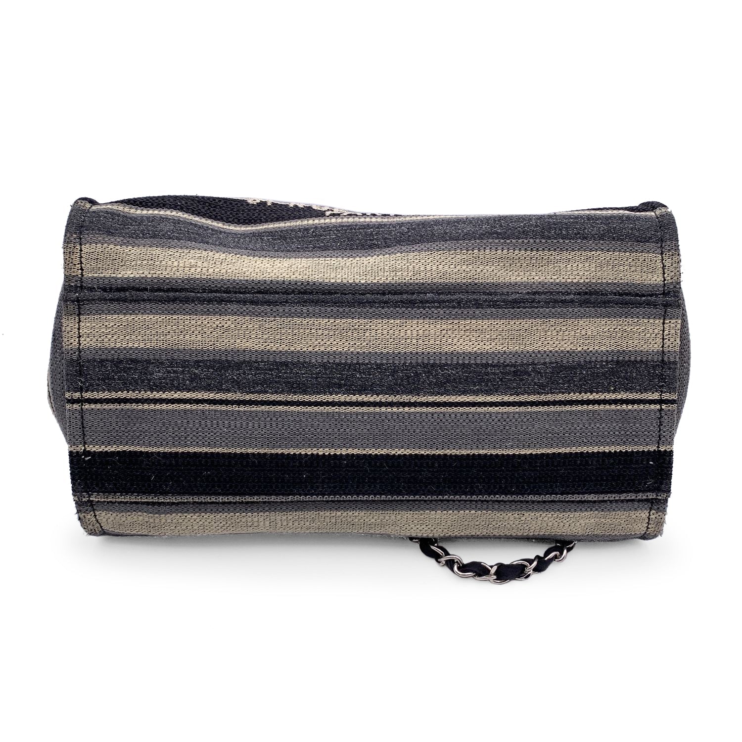 Beautiful Chanel 'Deauville' Tote, Crafted In Black, Grey And Beige Striped Canvas With A White 'Chanel Cc31, Rue Cambon - Paris' Logo.