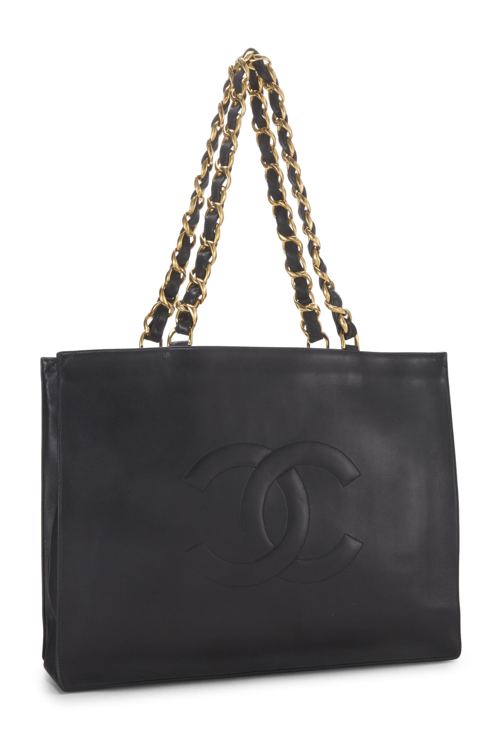 Chanel, Black Lambskin Flat Chain Handle Tote, Black