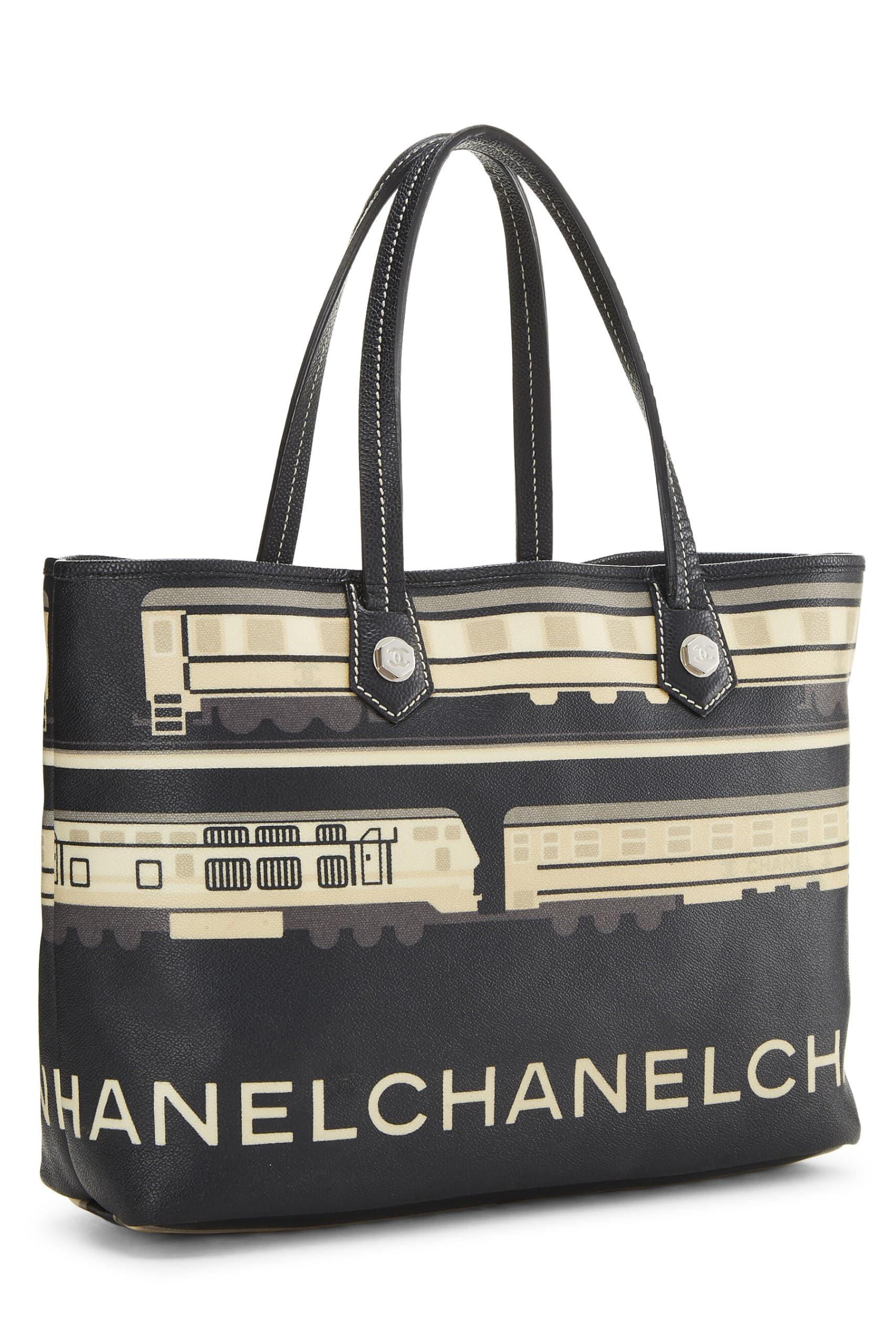 Chanel, Black & Multicolored Coated Canvas Le Train Tote, Black