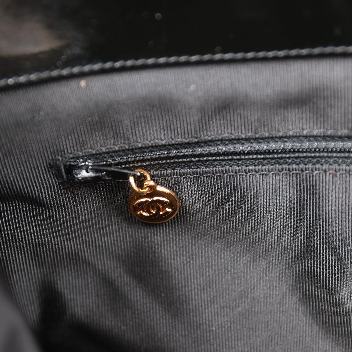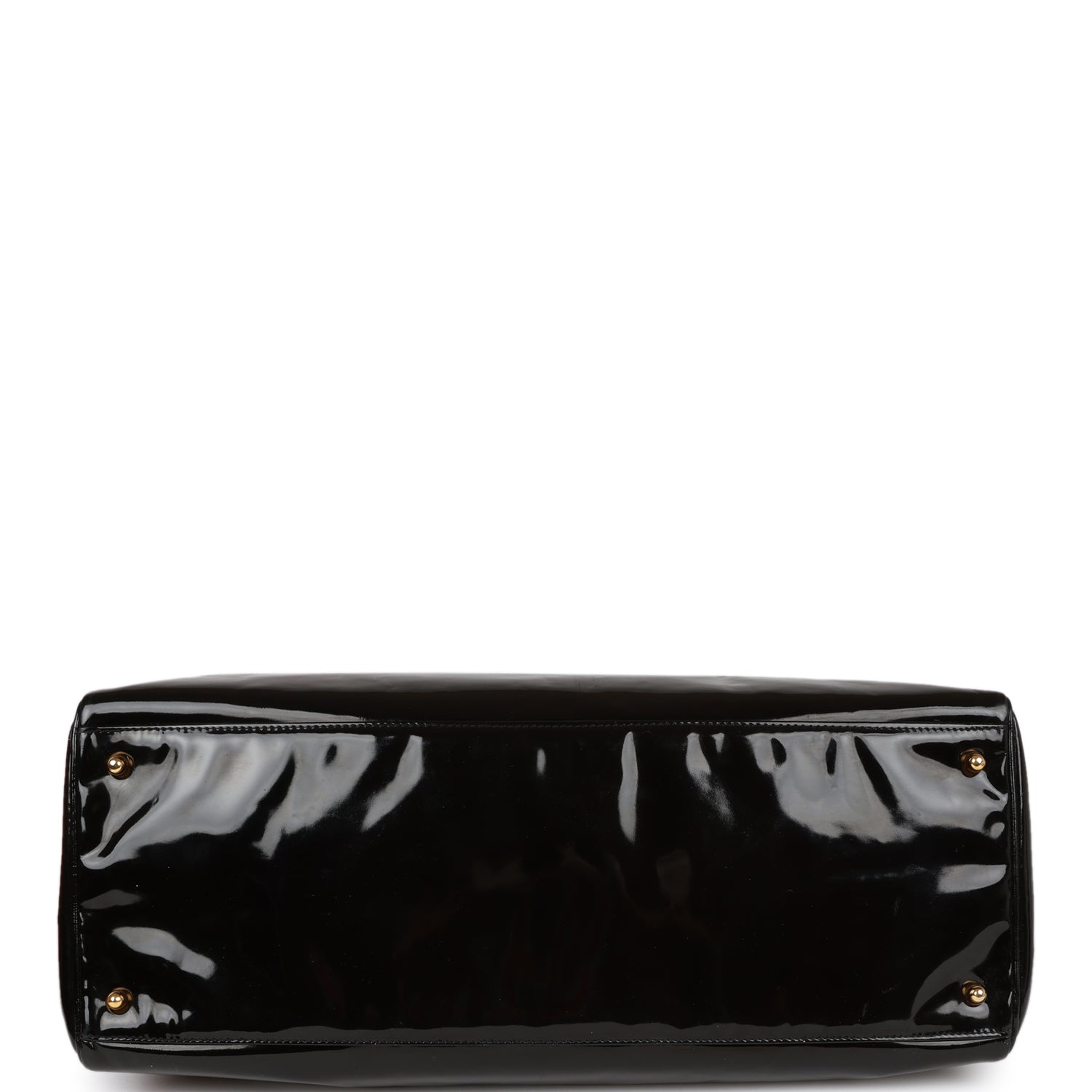 Vintage Chanel Supermodel Weekender Tote Bag Black Patent Gold Hardware