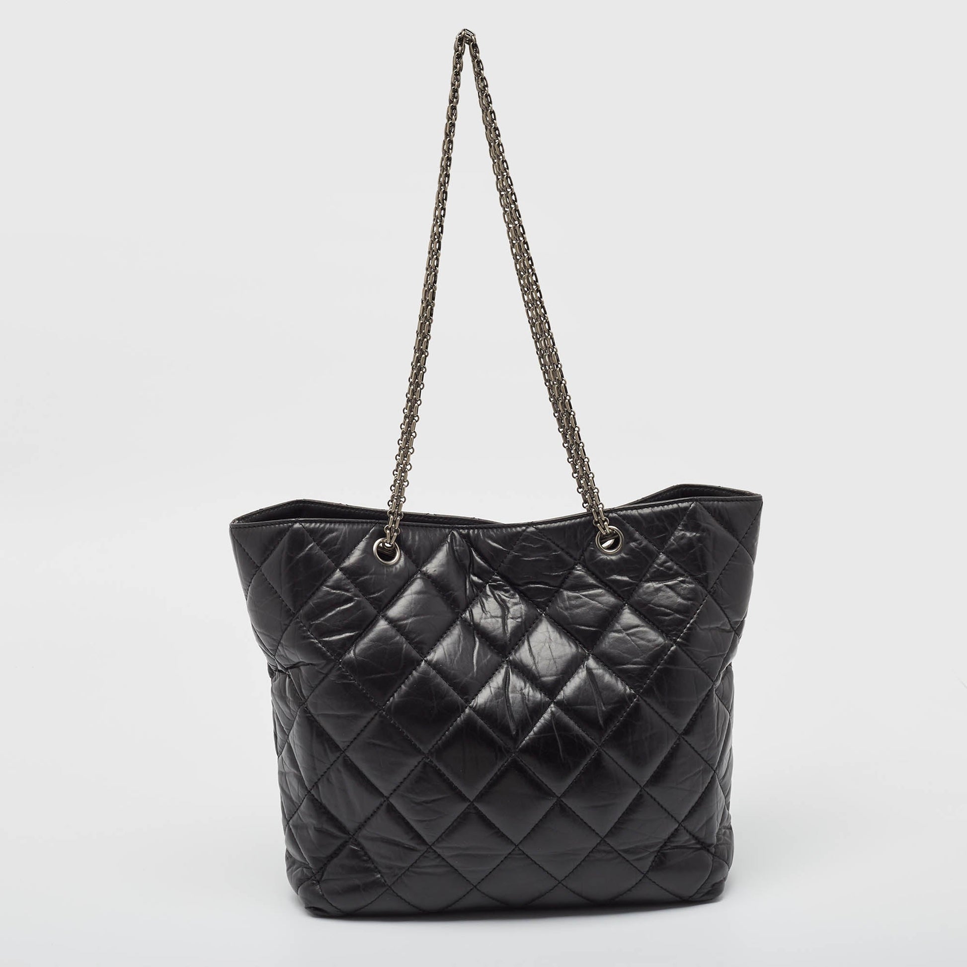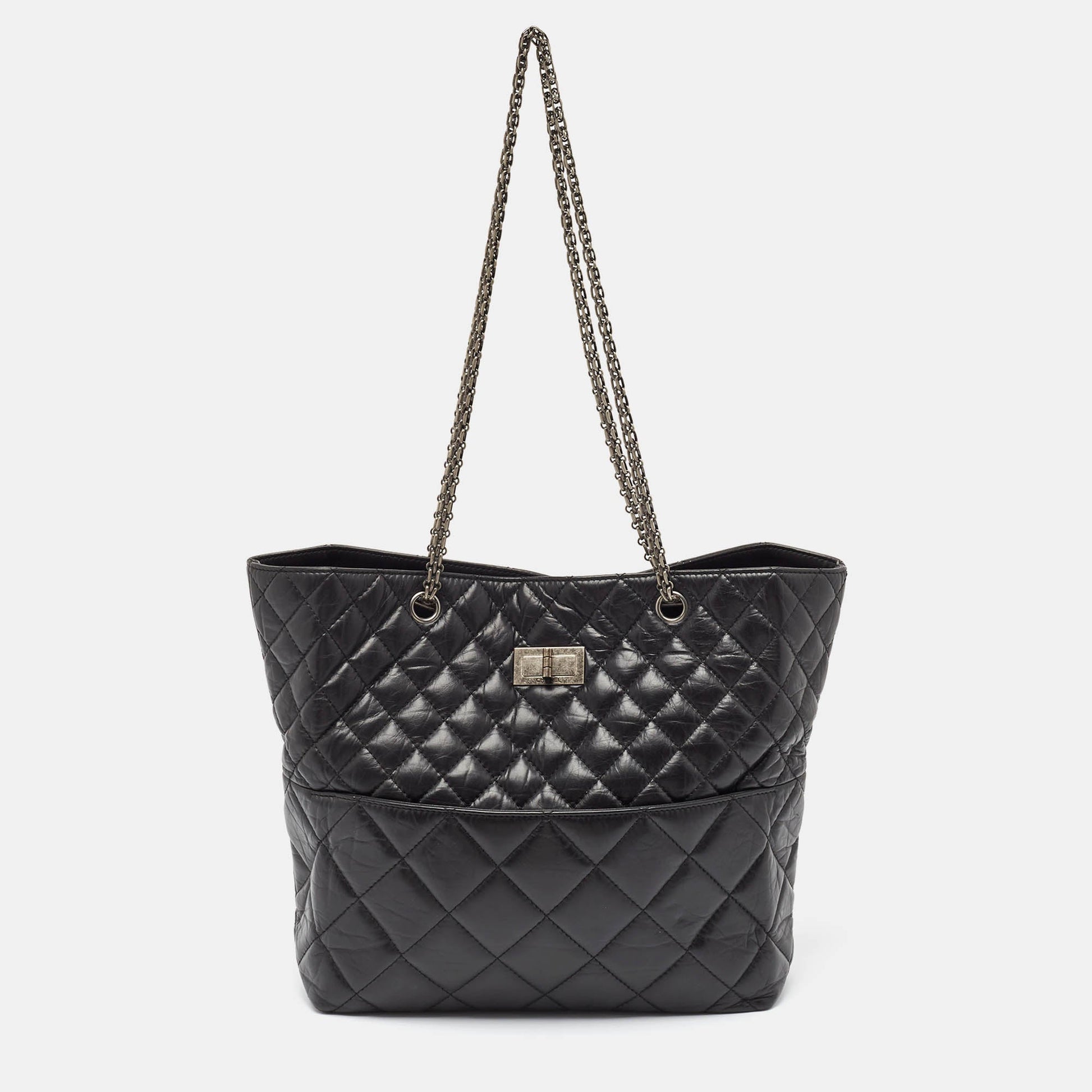 CHANEL Black Quilted Aged Leather Reissue East West Tote