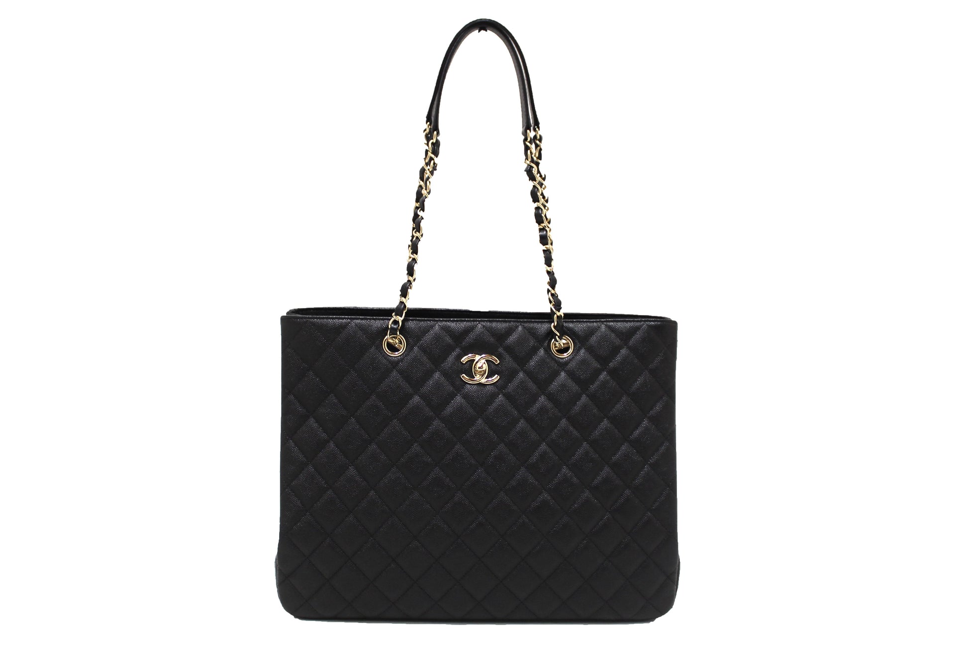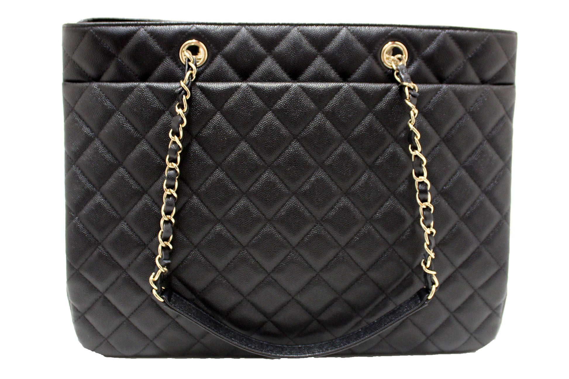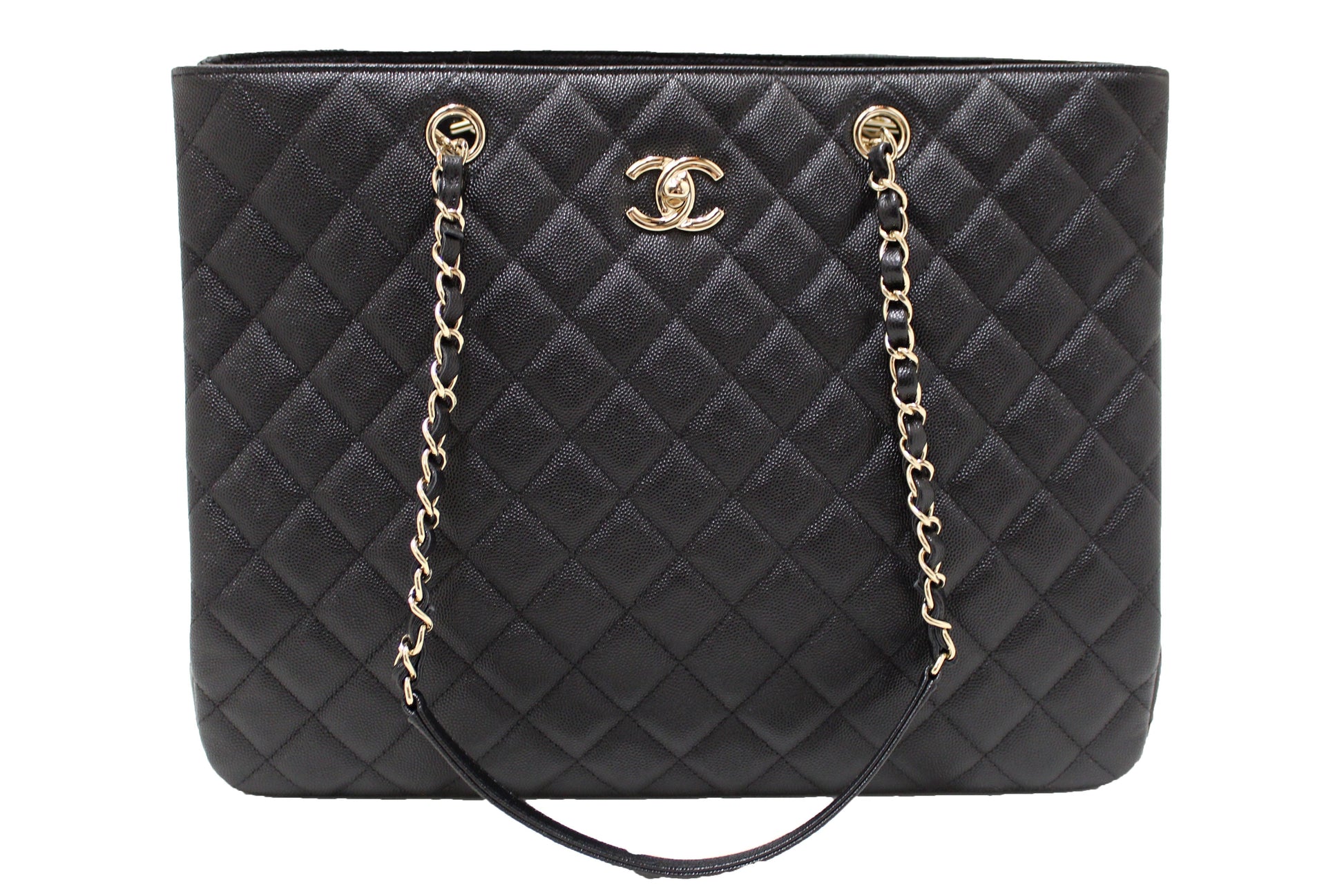 Chanel Black Quilted Caviar Leather Large Shopping Tote Bag