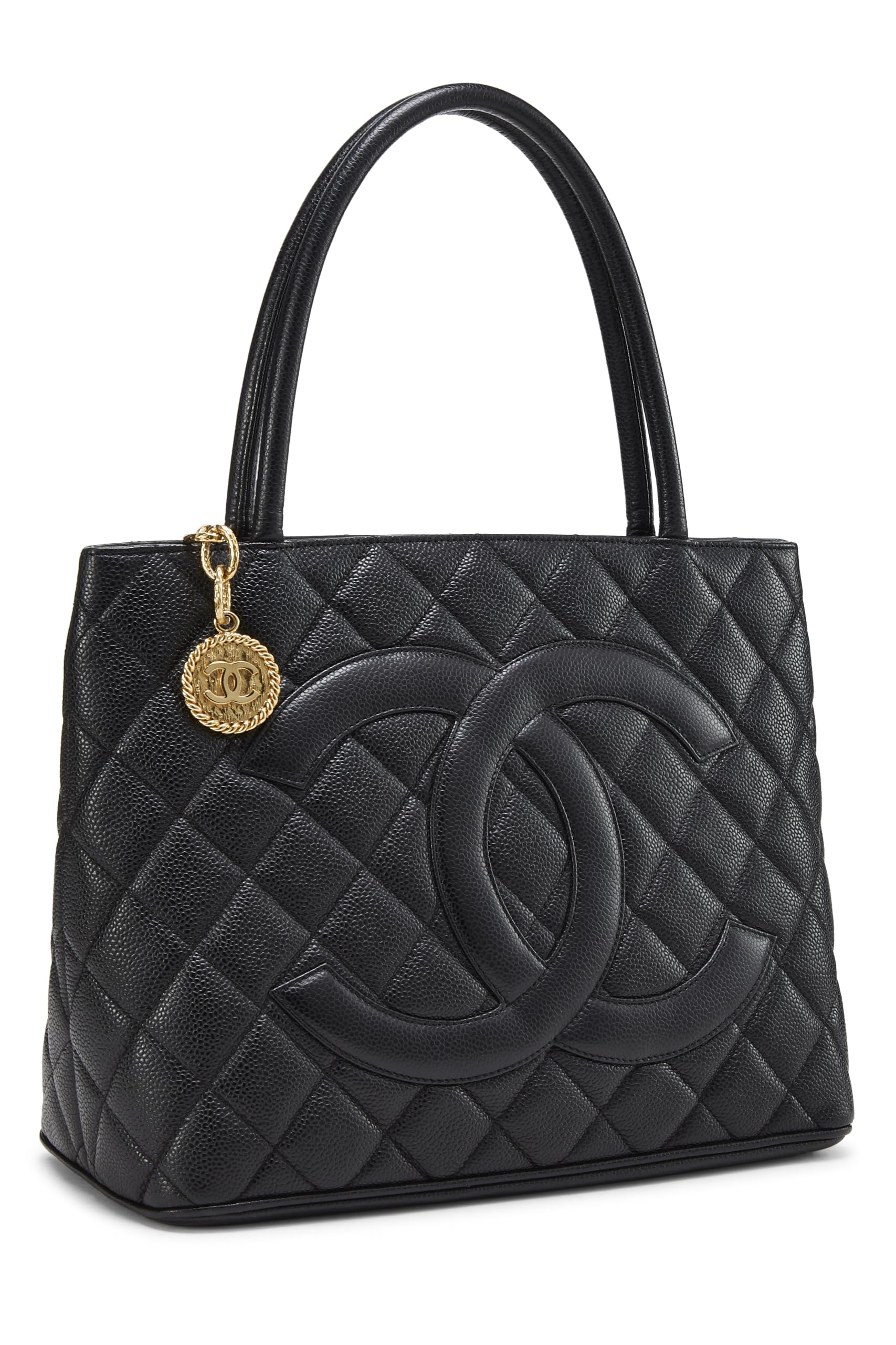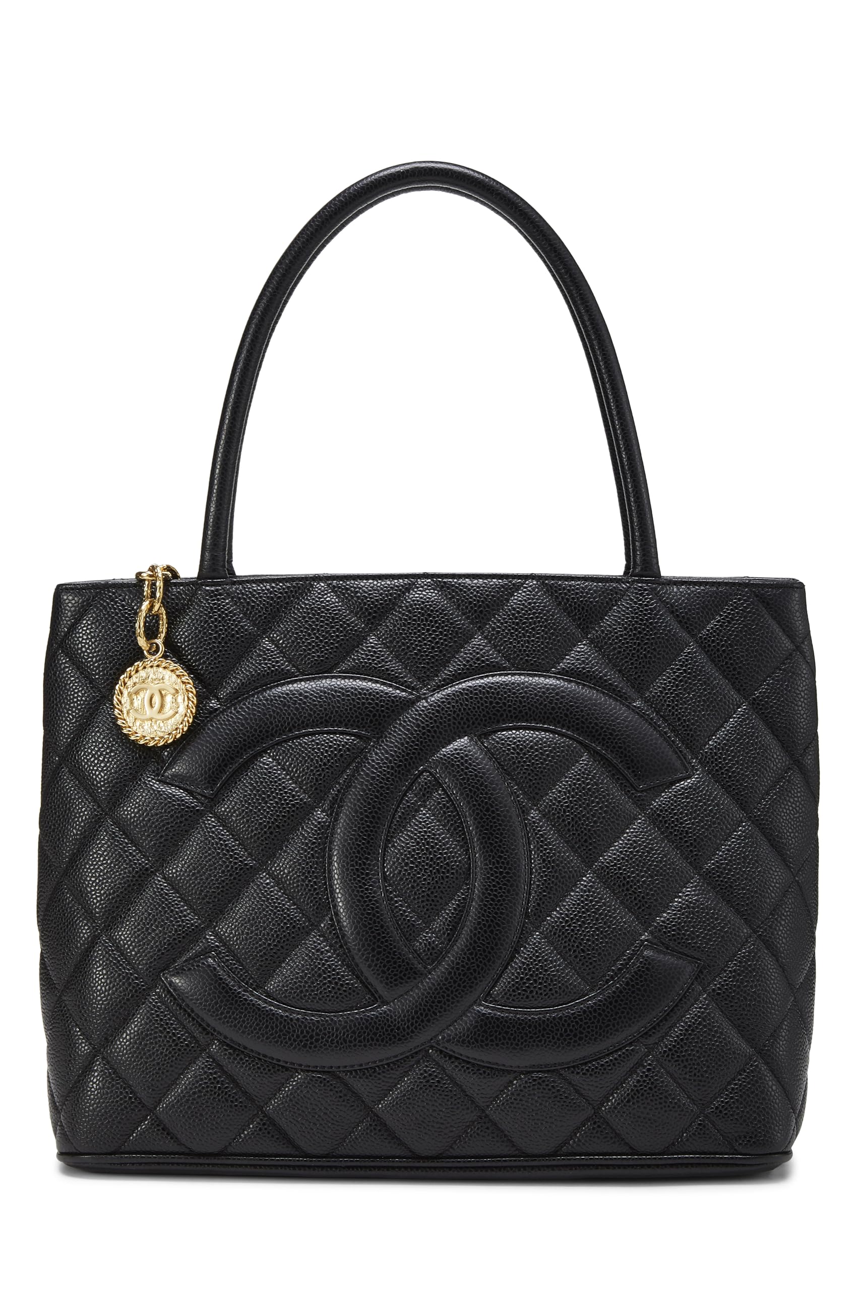 Chanel, Black Quilted Caviar Medallion Tote, Black