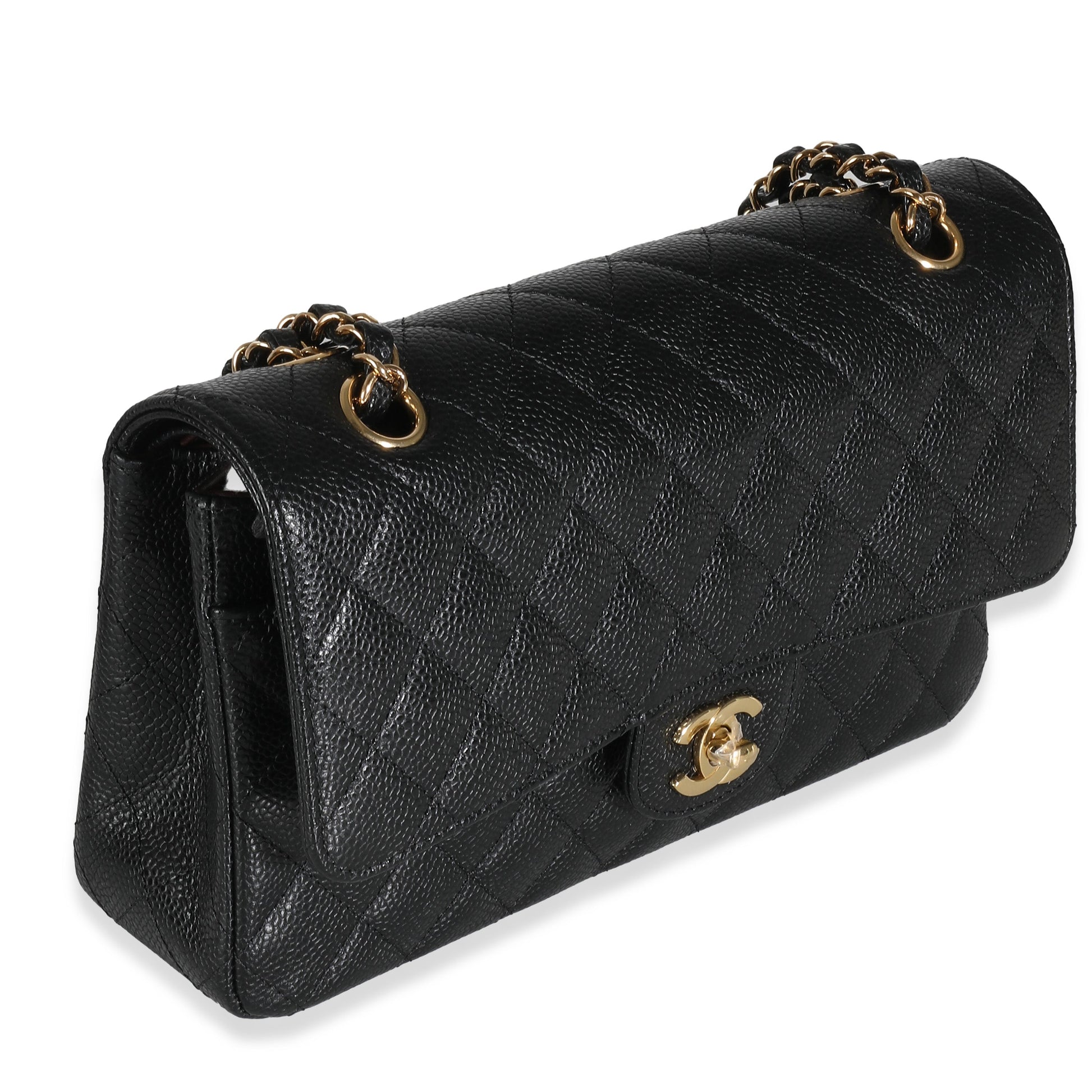 Listing Title: Chanel Black Quilted Caviar Medium Classic Double Flap Bag