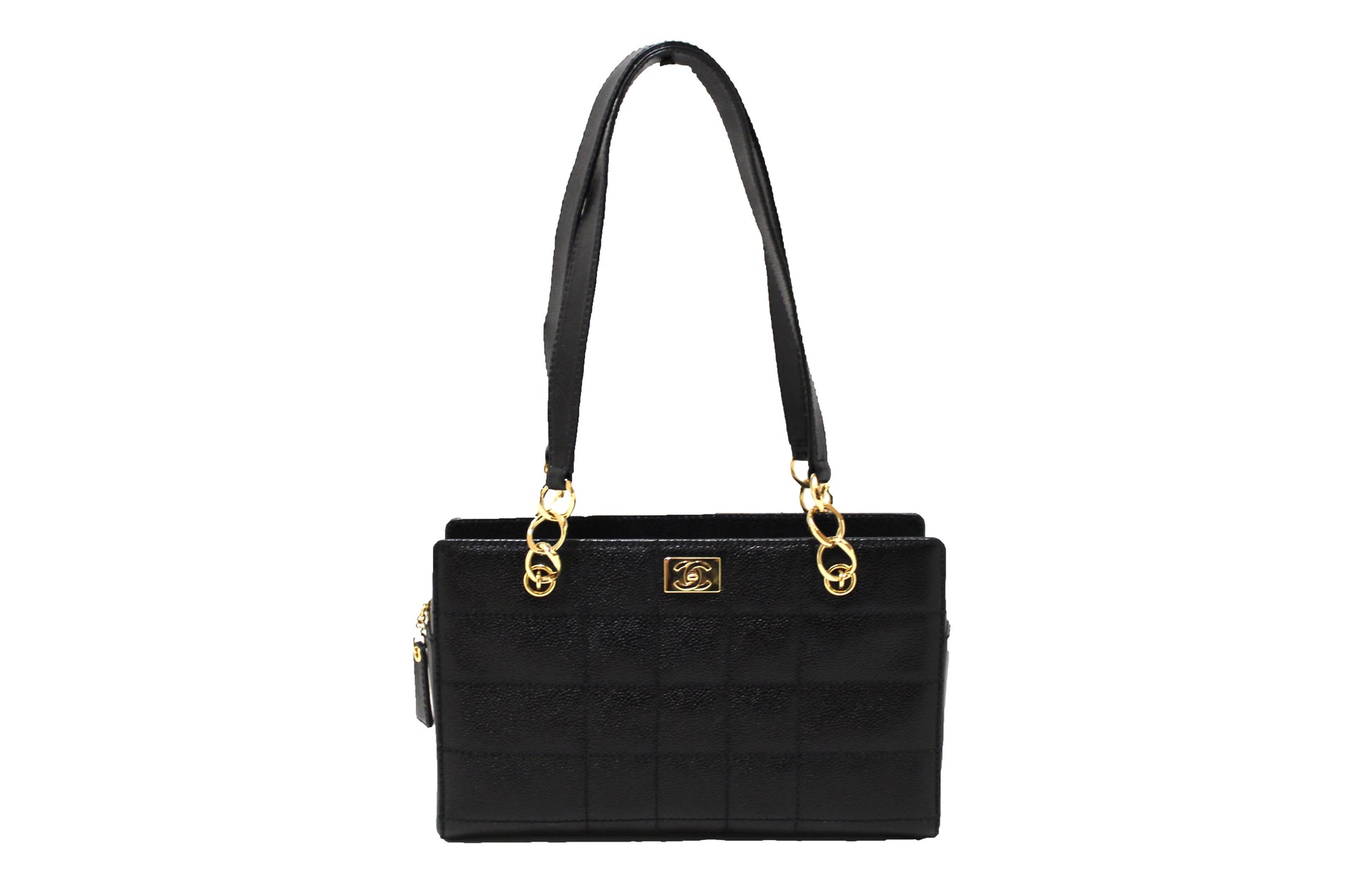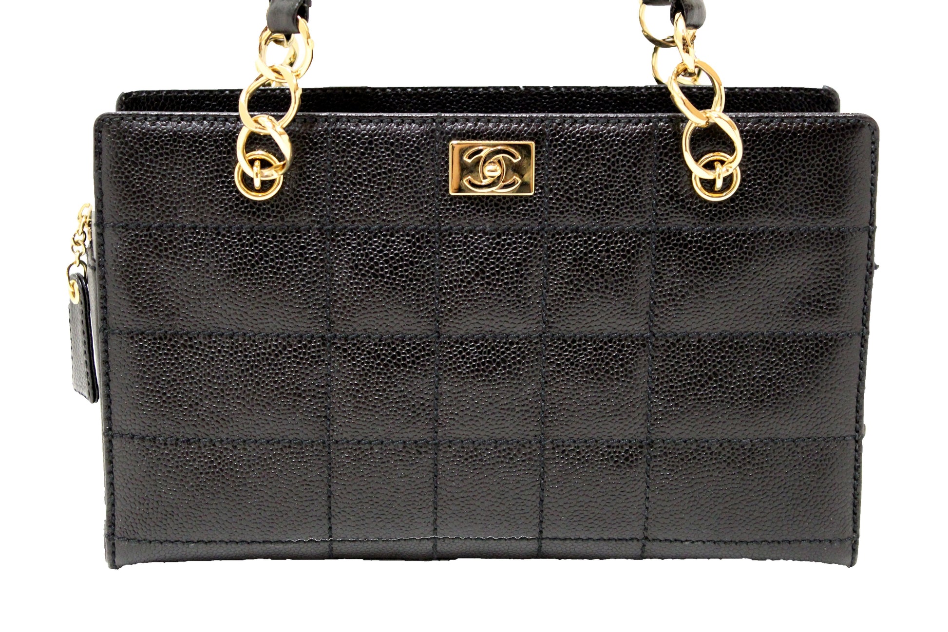 Chanel Black Square Stitch Caviar Leather Shoulder Tote Bag