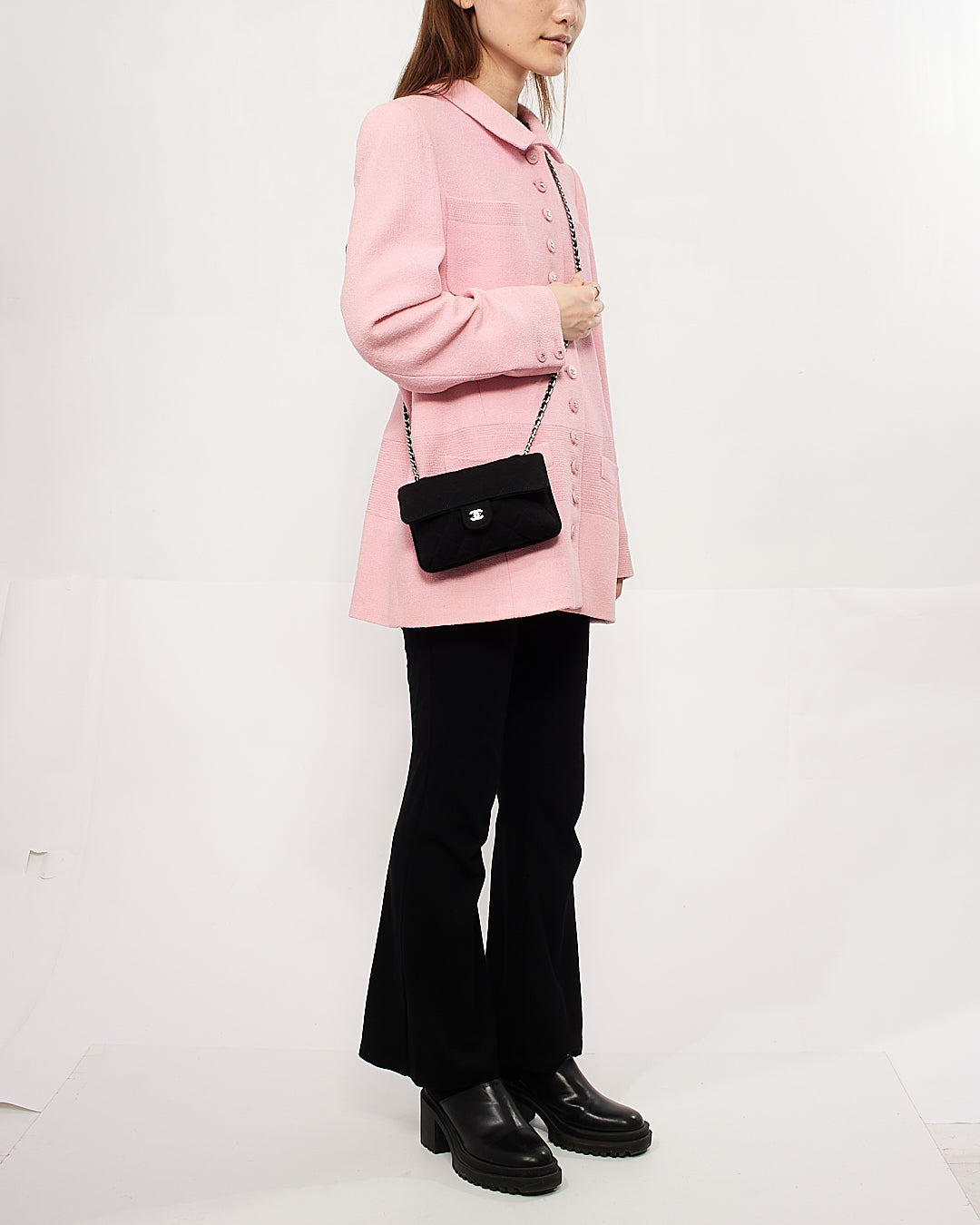 Chanel Black/Grey Wool/Multi Logo Mini Flap/Foldable Shopping Tote