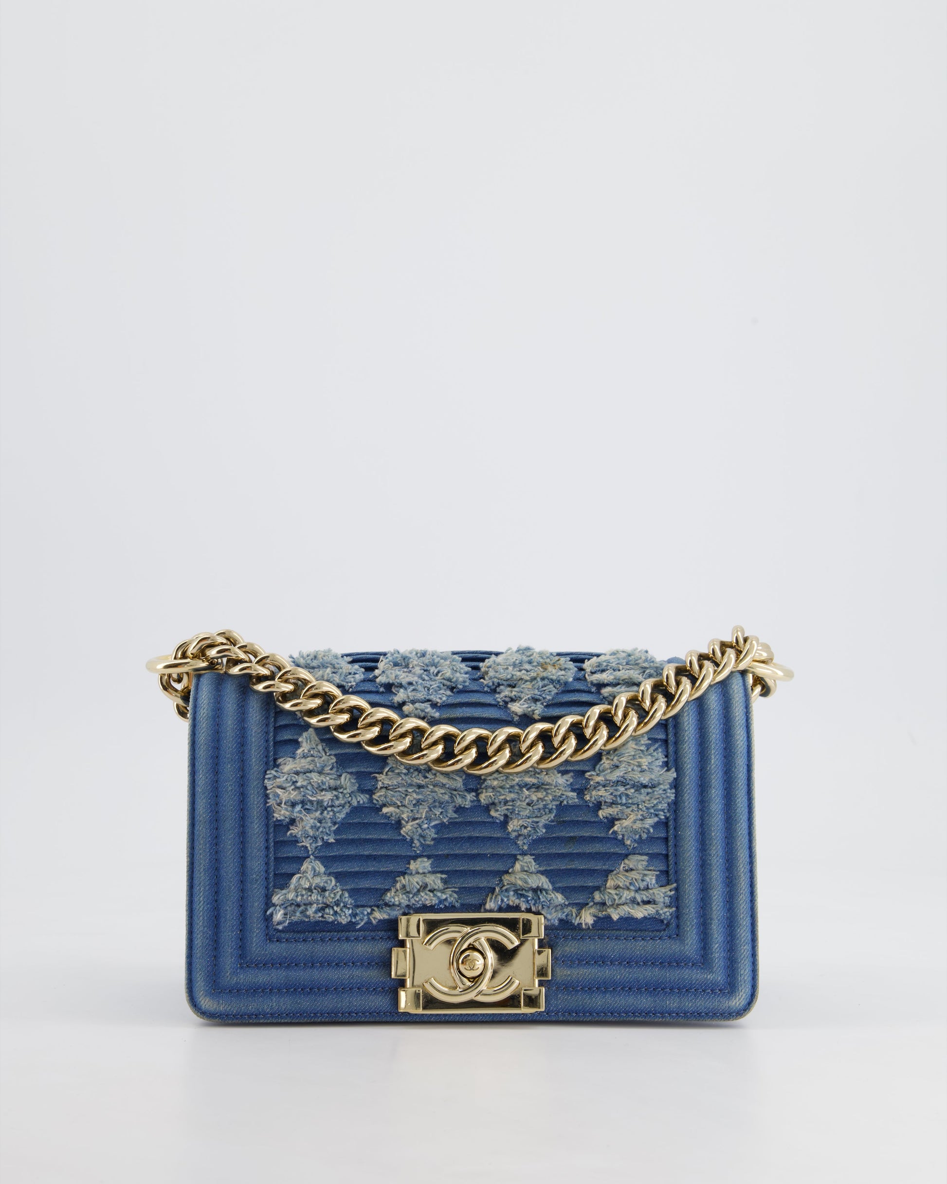 *HOT* Chanel Blue Small Boy Bag in Denim with Champagne Gold Hardware