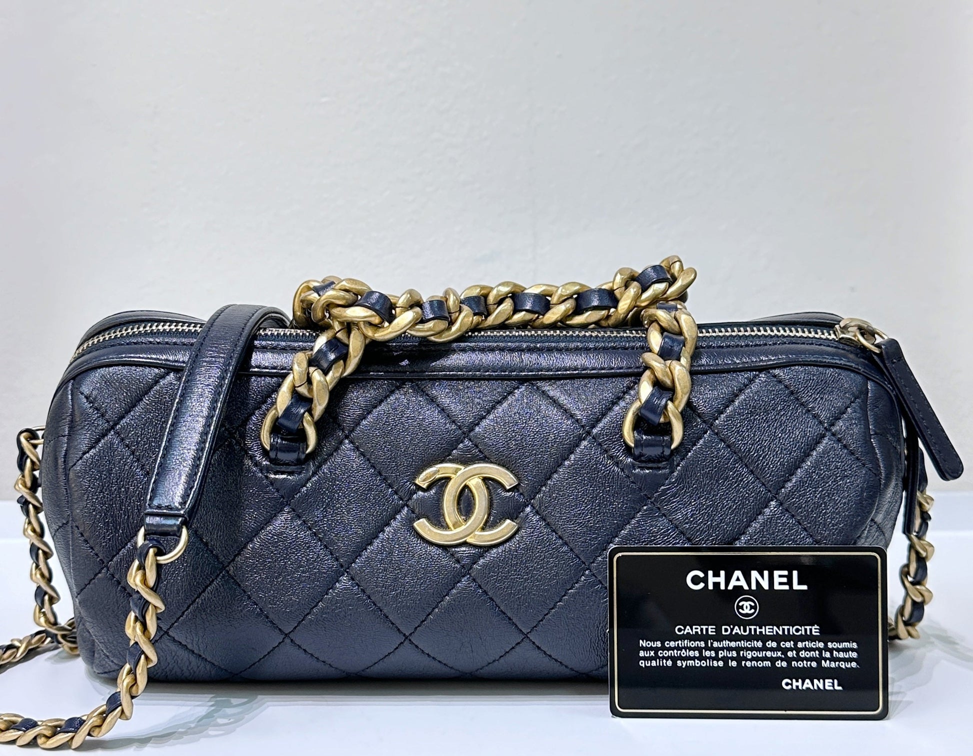 CHANEL Bowling chain handbag Womens shoulder bag Navy Blue GHW