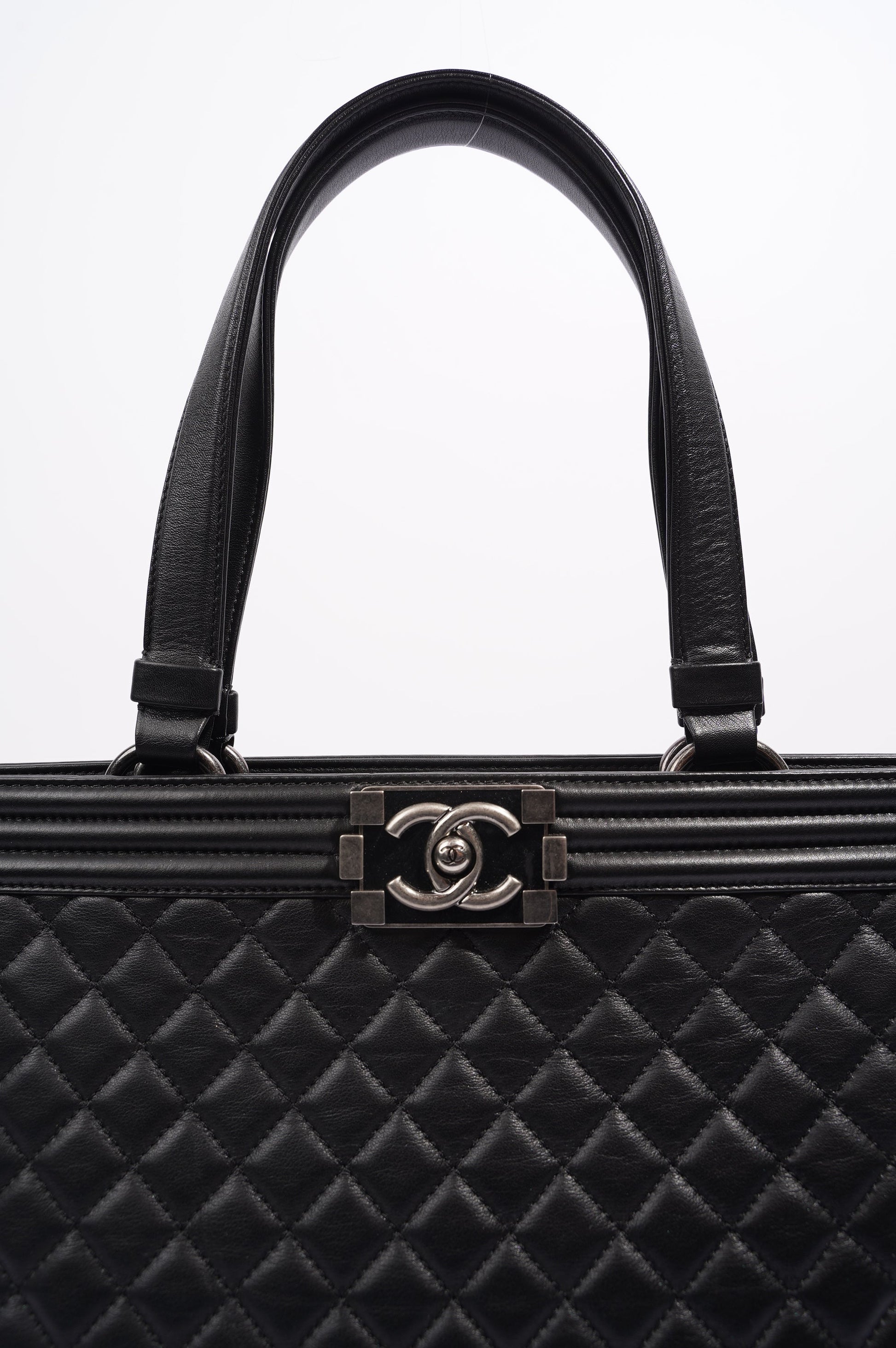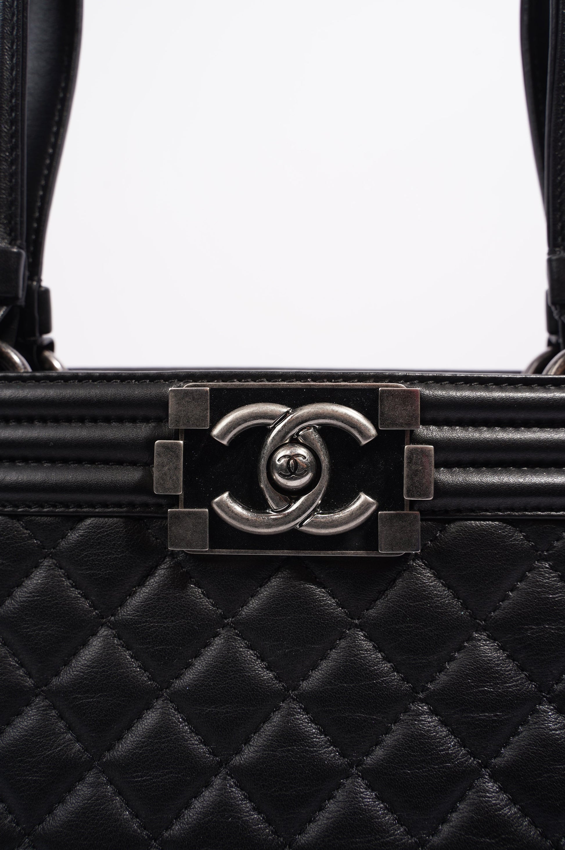 Chanel Womens Lambskin Leather Boy Shopping Tote Black