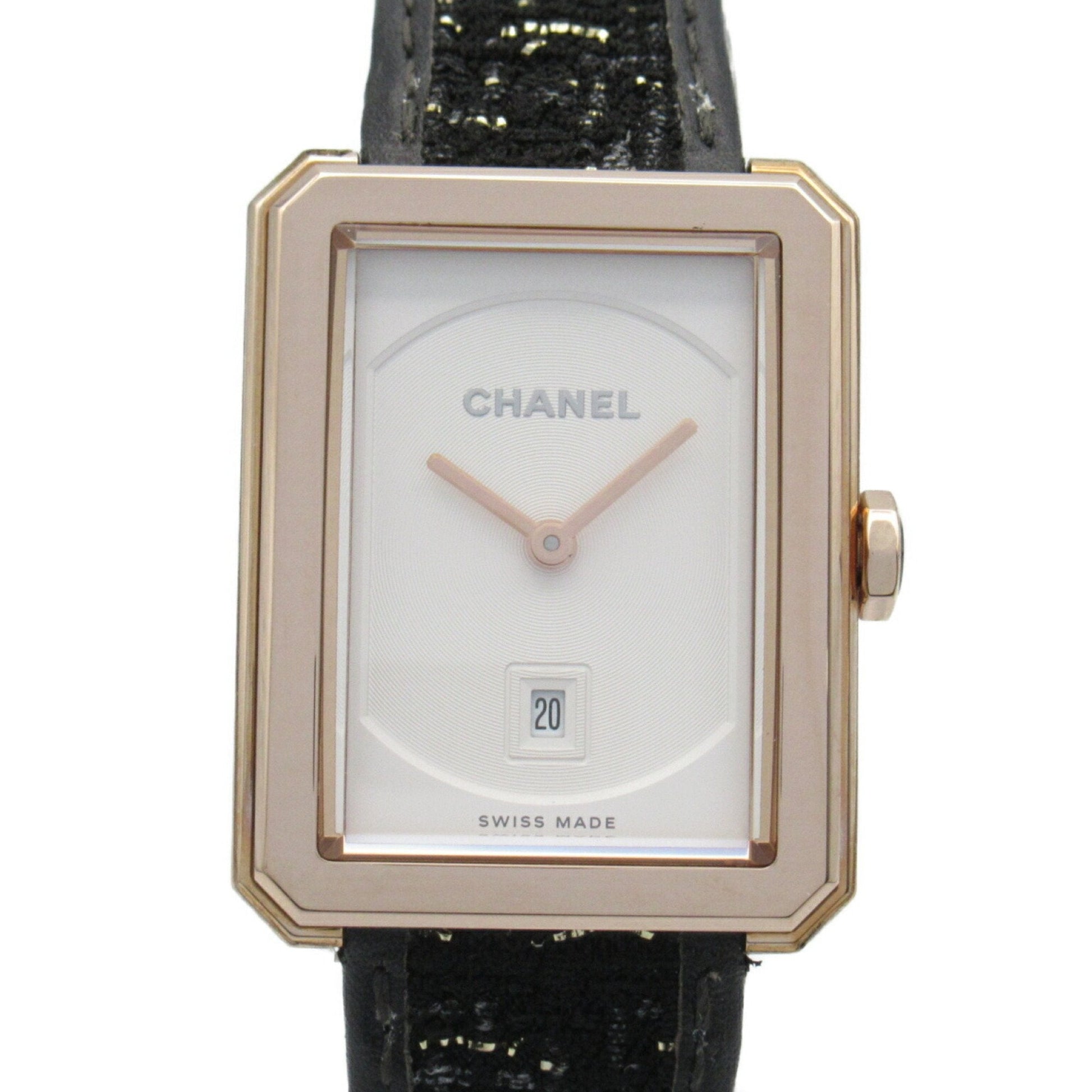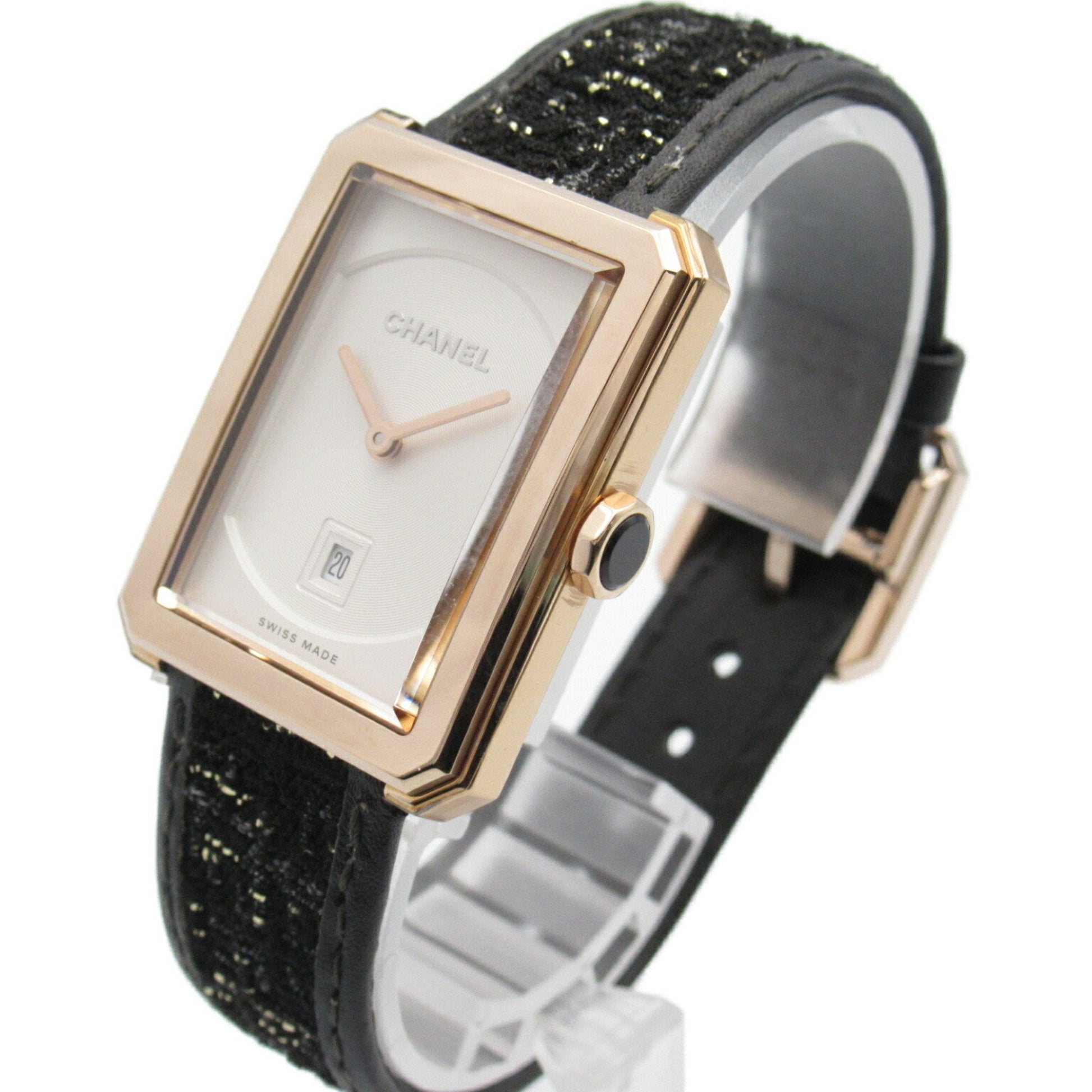 CHANEL Boyfriend Tweedy Strap Watch Leather Belt Beige Gold Women's White Opal H5586