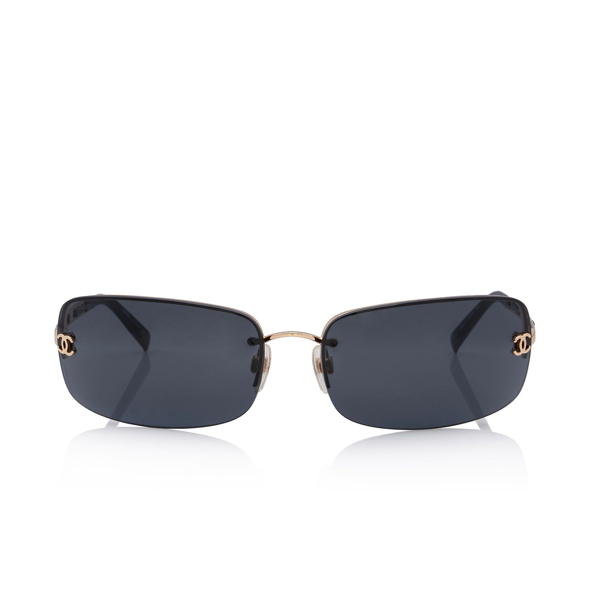 Chanel Calfskin Chains CC Rimless Rectangular Sunglasses (SHF-TqQBvV)