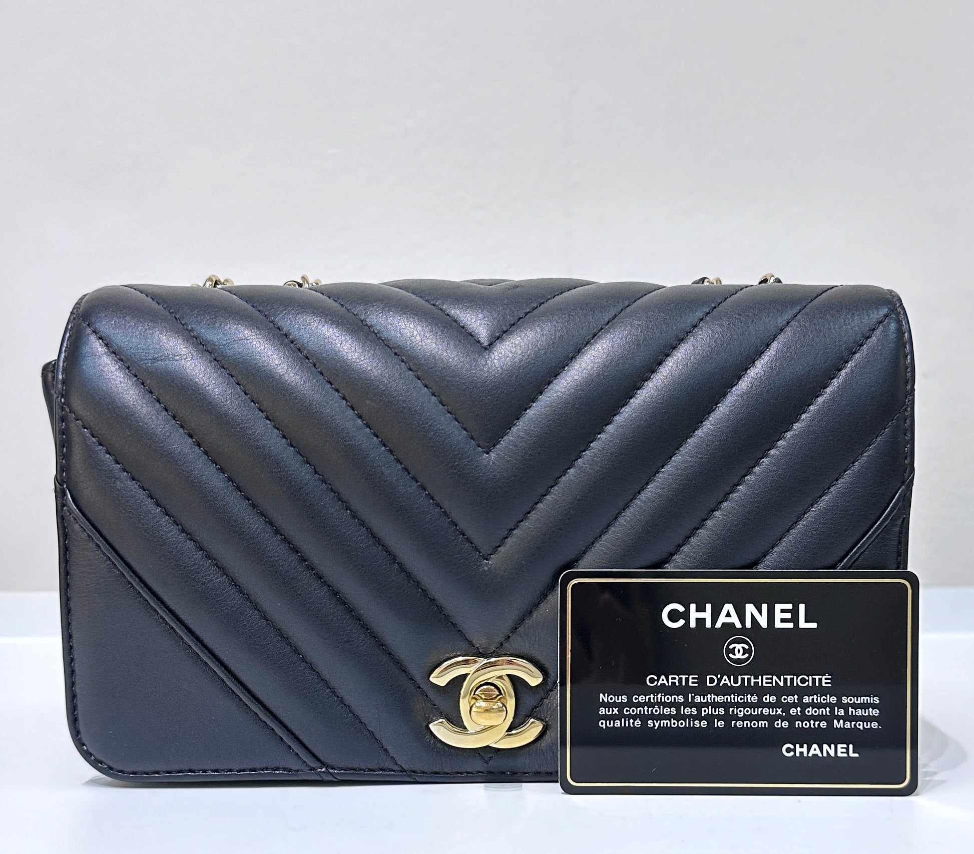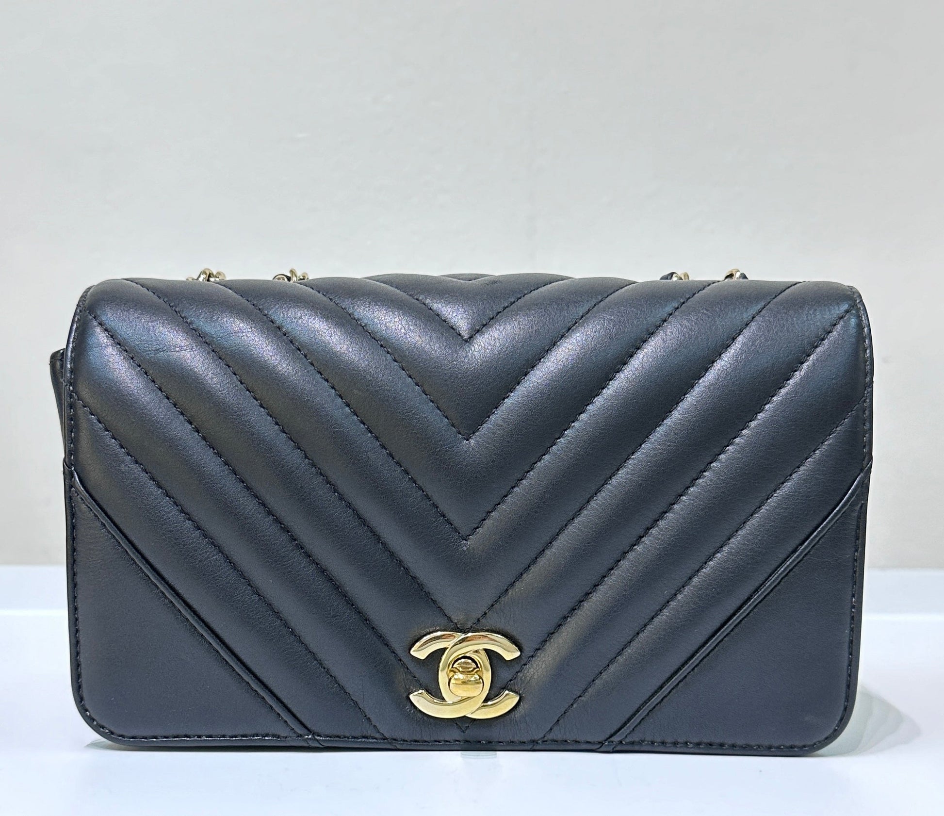 CHANEL Calfskin Chevron Quilted Mini Statement Flap Black