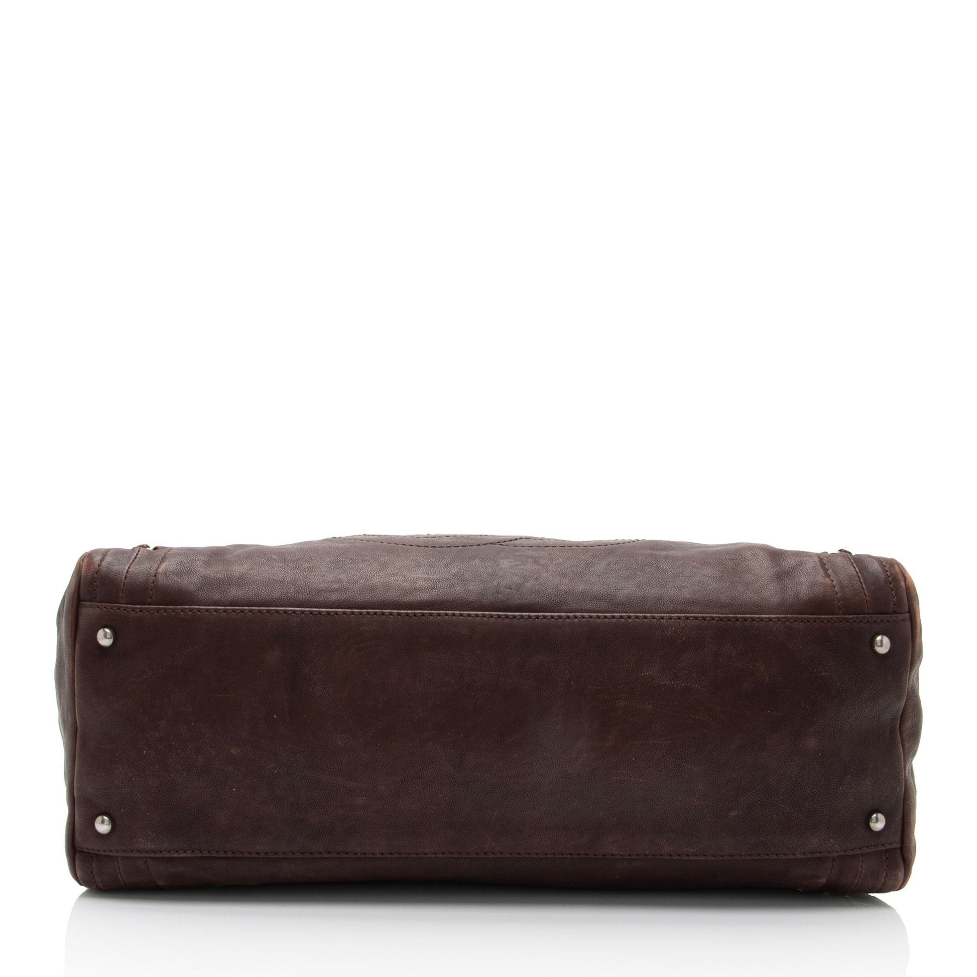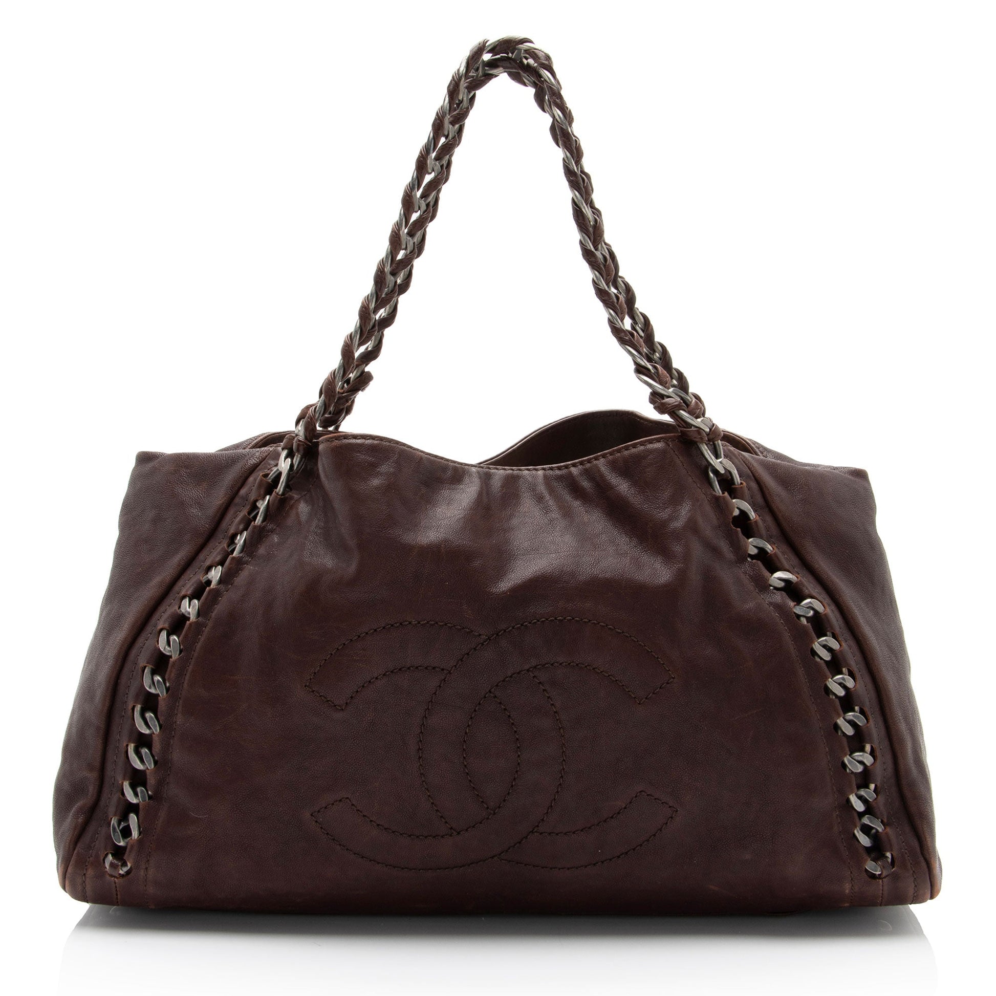 Condition : New Visible scuffs to exterior bottom corners. Light creasing and scuffs throughout exterior. Scuffs throughout leather woven into chains. Light surface scratches to hardware. Marks, ink marks, and wear throughout interior. Please note: Read product details carefully. This is a dark brown bag.