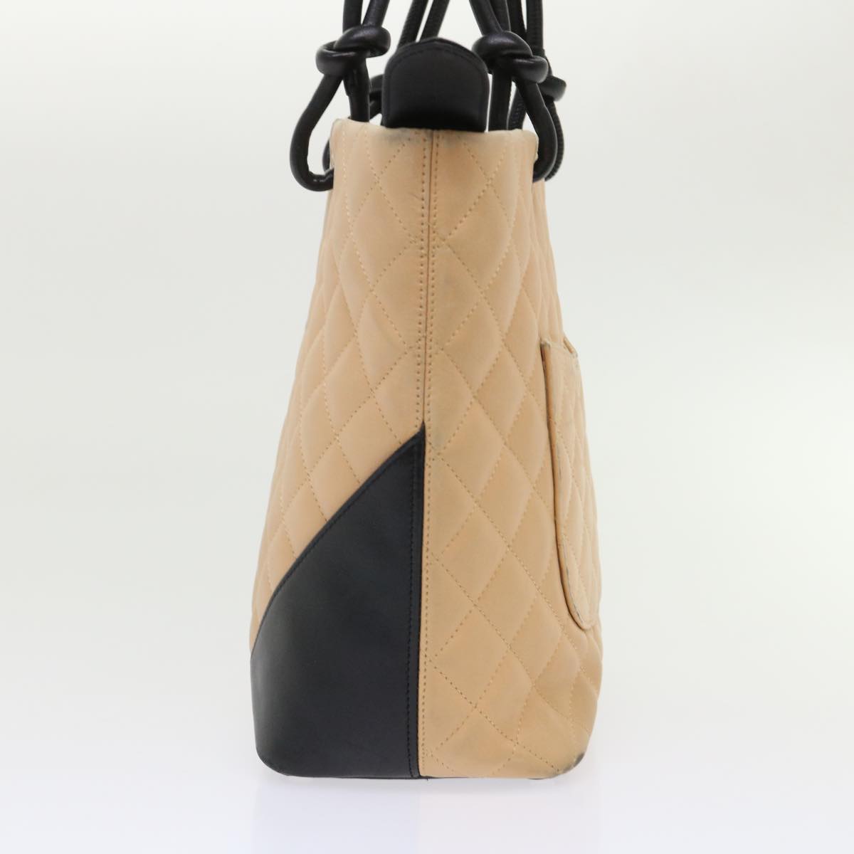 CHANEL Cambon Line Tote Bag Leather Beige CC Auth am4685