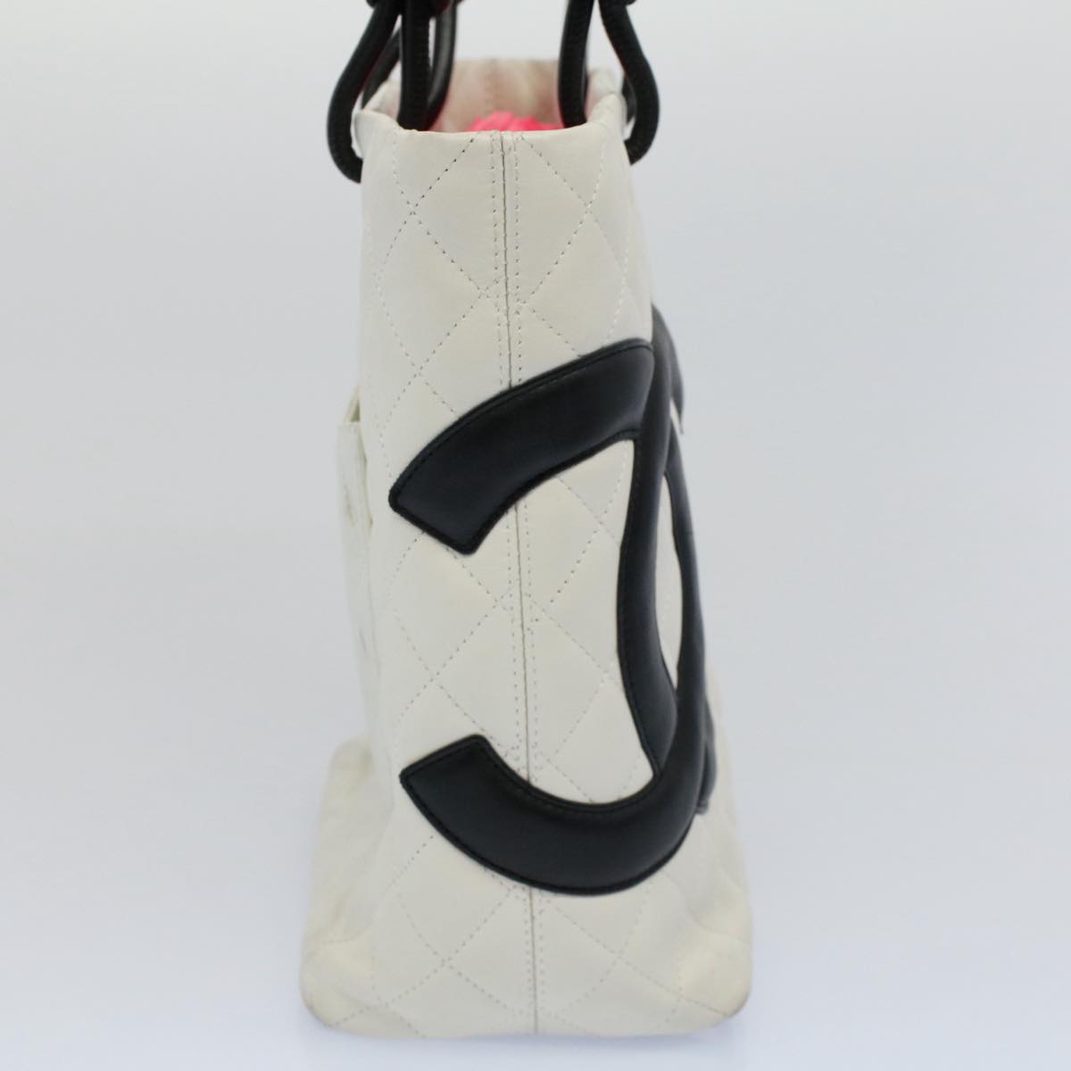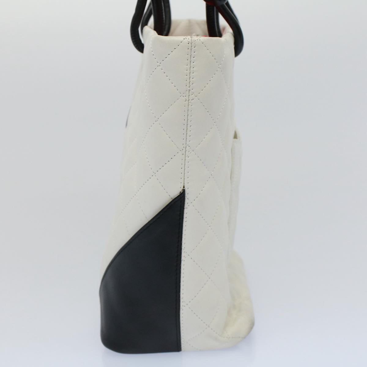 CHANEL Cambon Line Tote Bag Leather White CC Auth am5197A