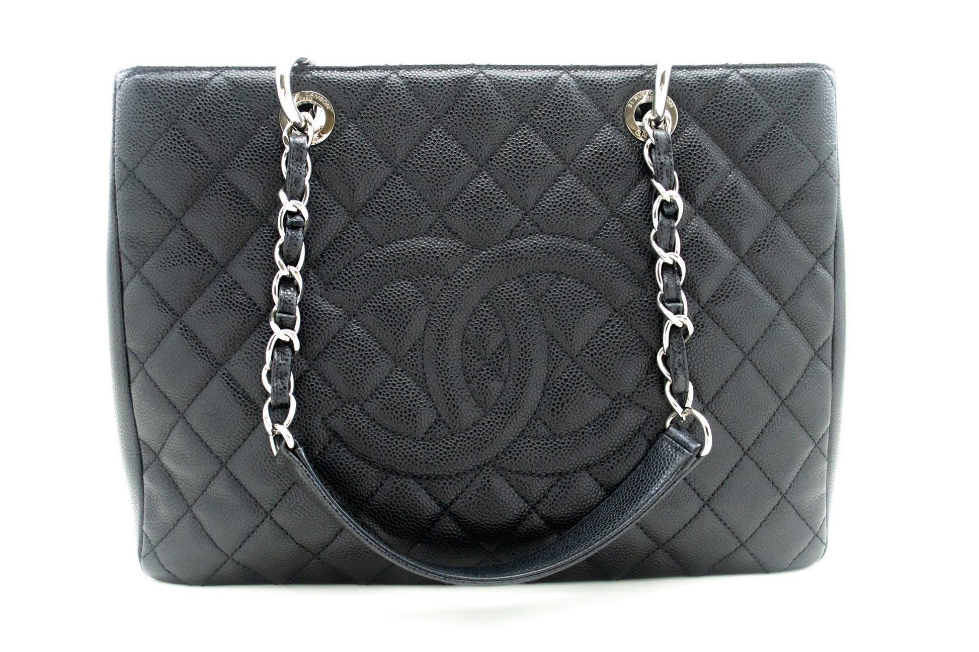 An CHANEL Caviar GST 13" Grand Shopping Tote Chain Shoulder Bag Black.