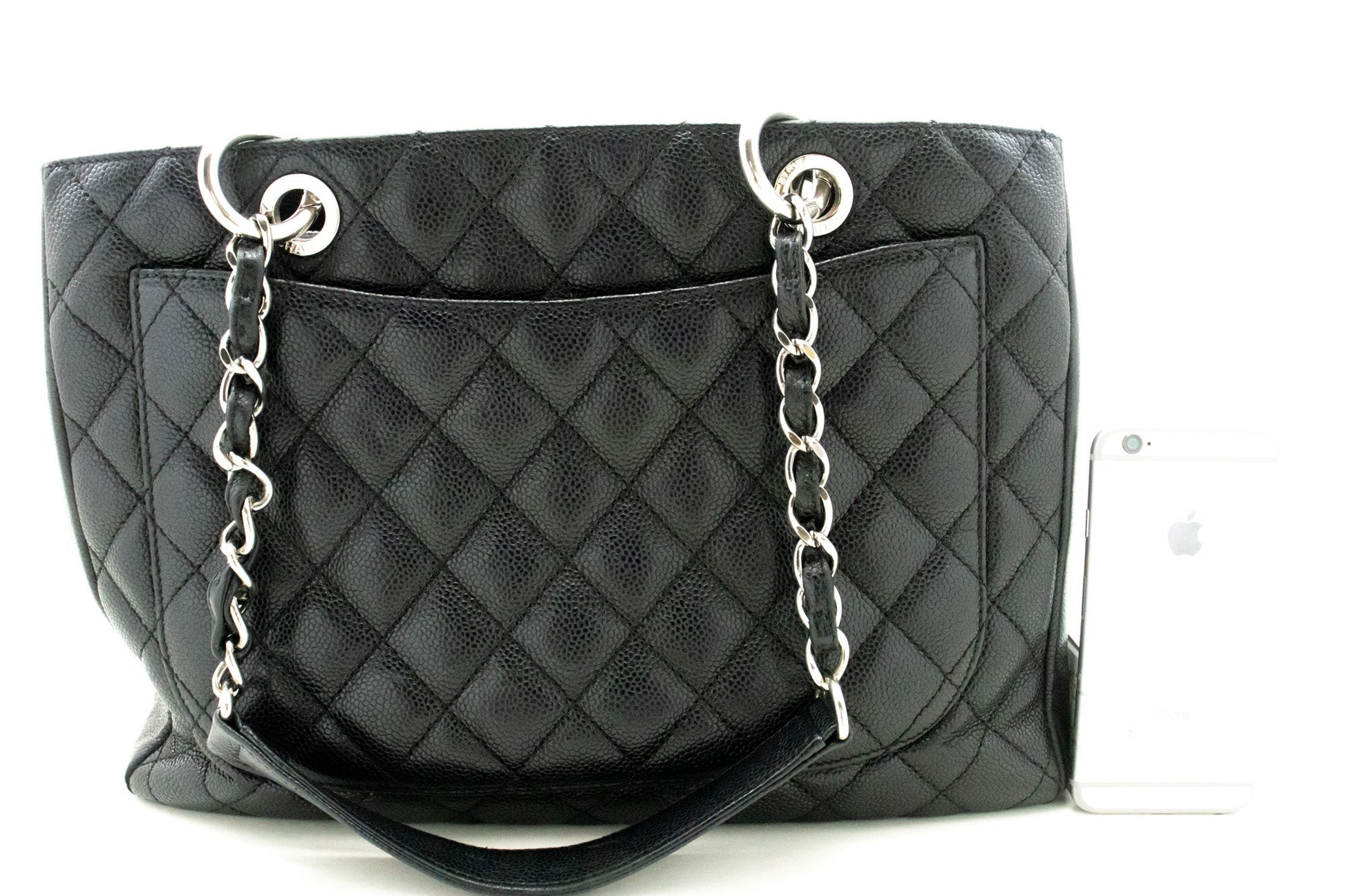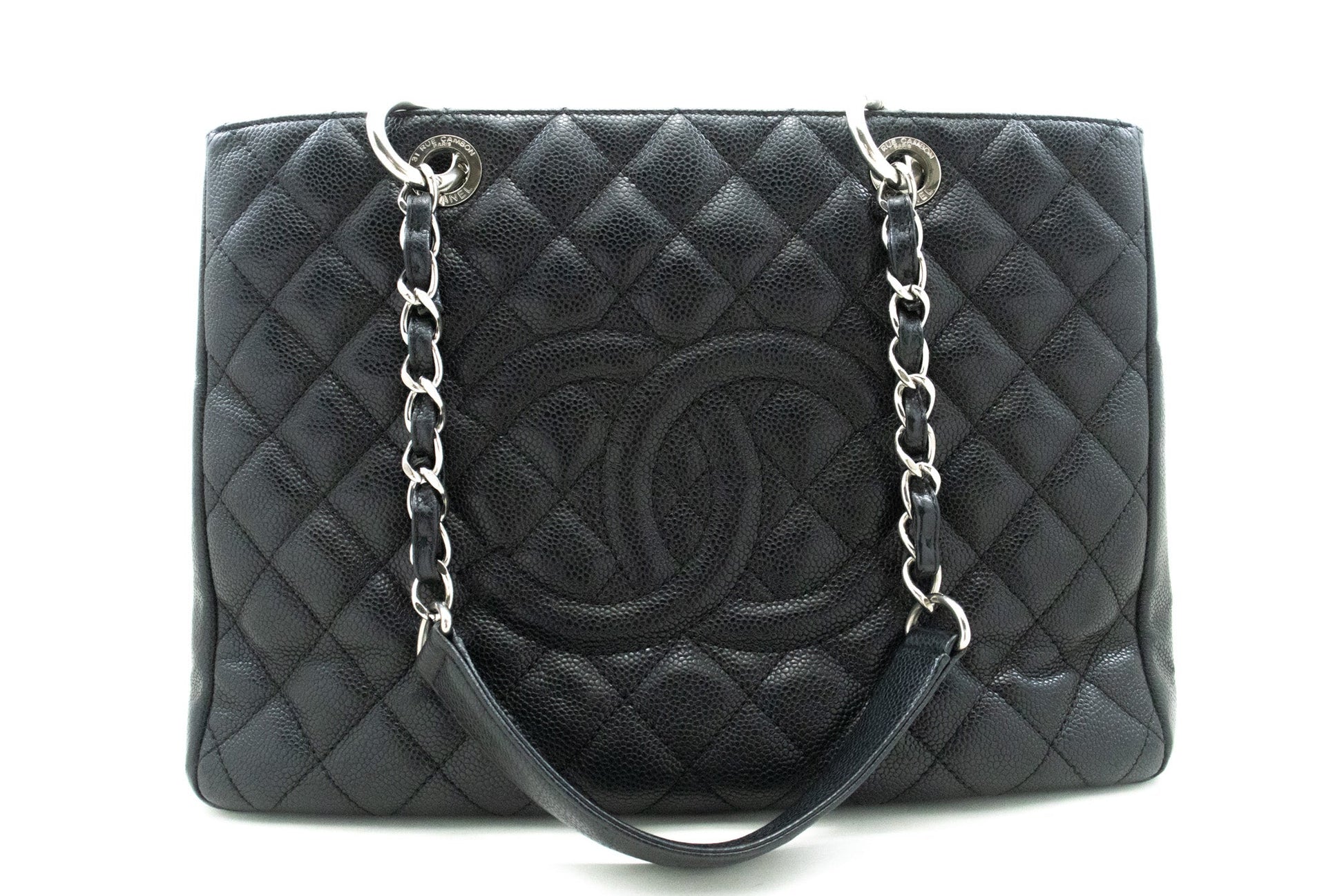 An CHANEL Caviar GST 13" Grand Shopping Tote Chain Shoulder Bag Black.