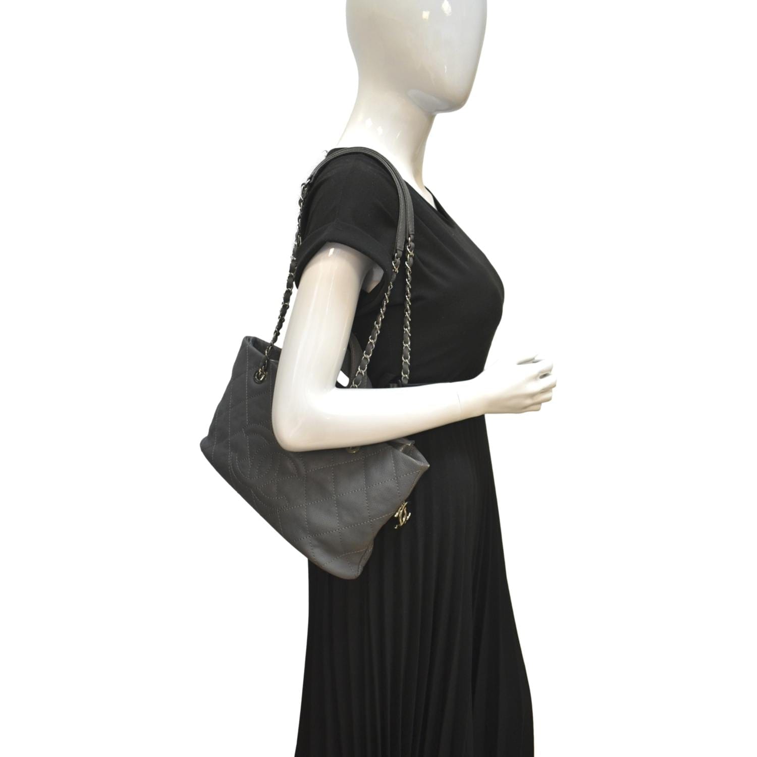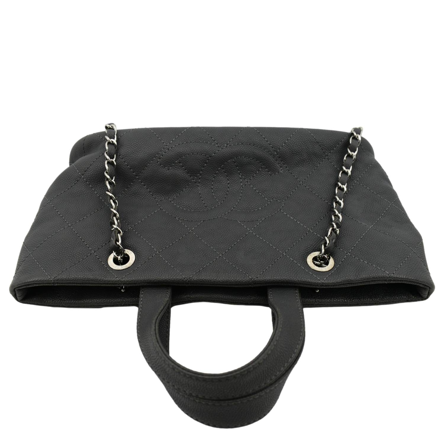 CHANEL Quilted Caviar Leather Shopping Tote Bag Dark Grey