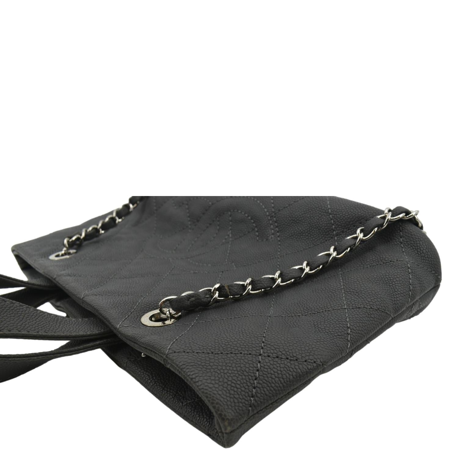 Chanel Quilted Caviar Leather Shopping Tote Bag Dark