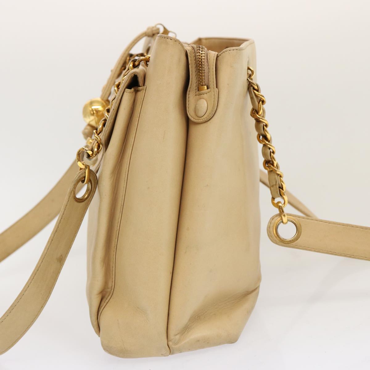 CHANEL Chain Tote Bag Leather Beige CC Auth 69975A