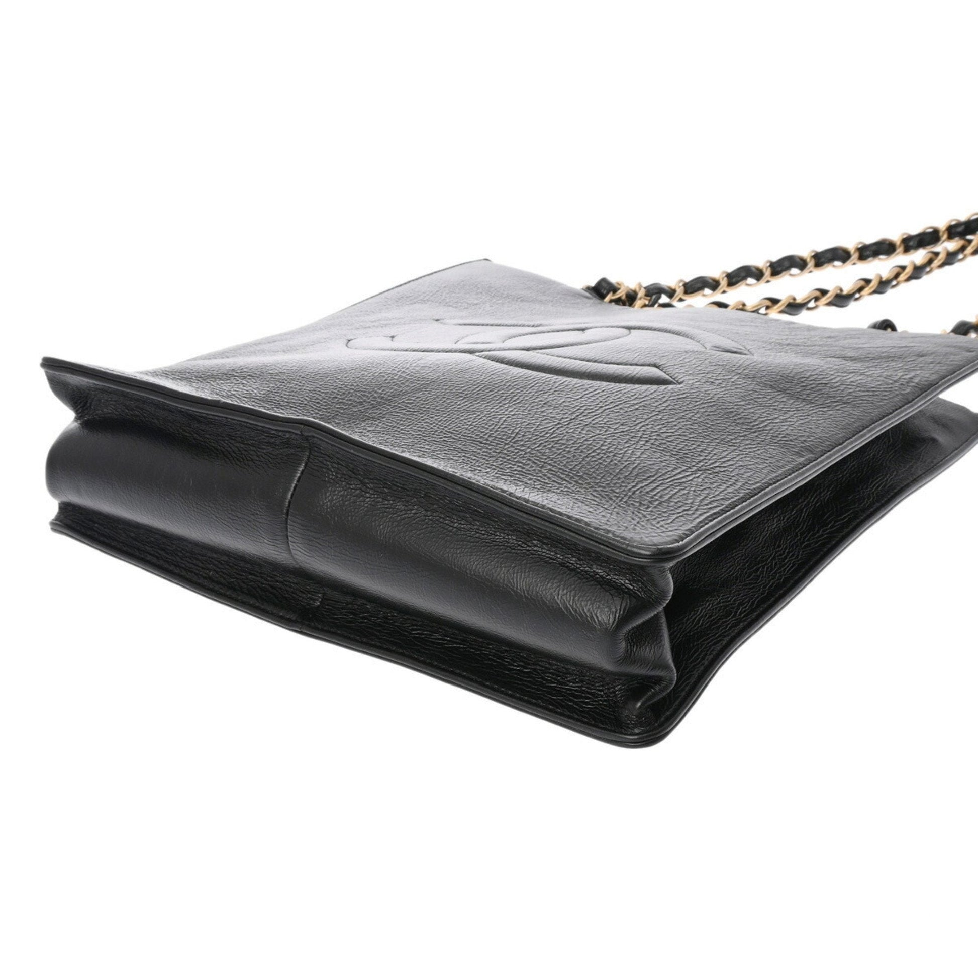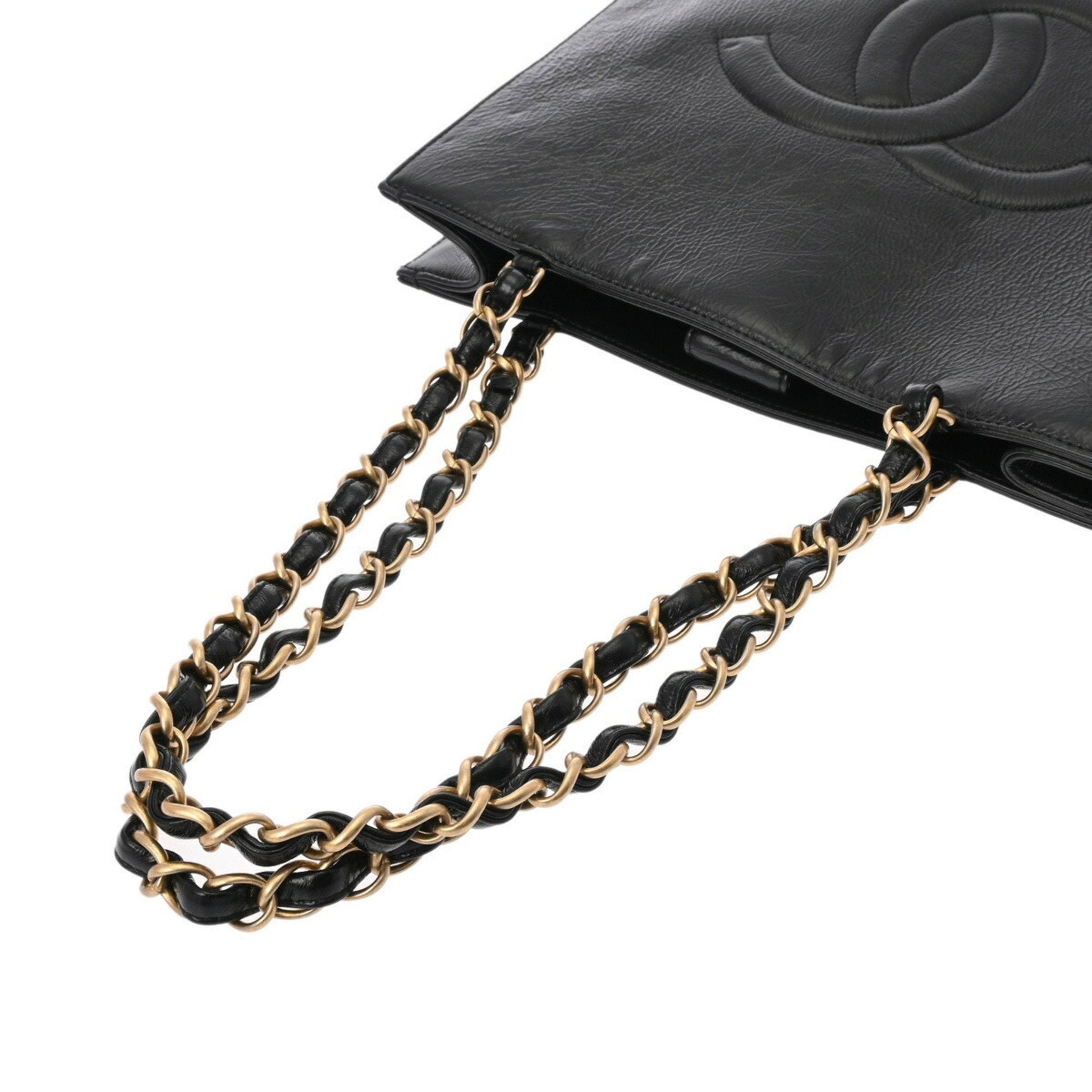 CHANEL Chanel Chain Tote Black Women's Embossed Leather Bag
