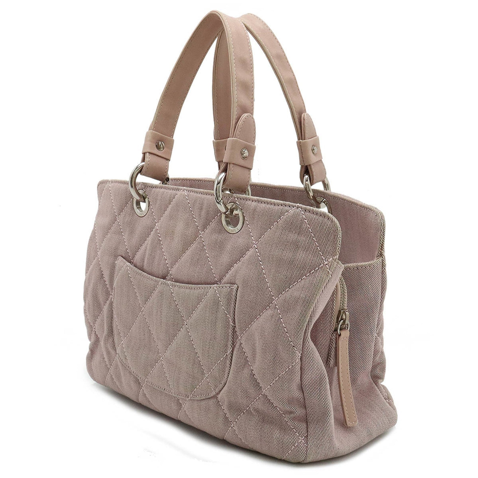 CHANEL Chanel Matelasse Coco Mark Handbag Tote Bag Canvas Leather Mauve Pink 6885