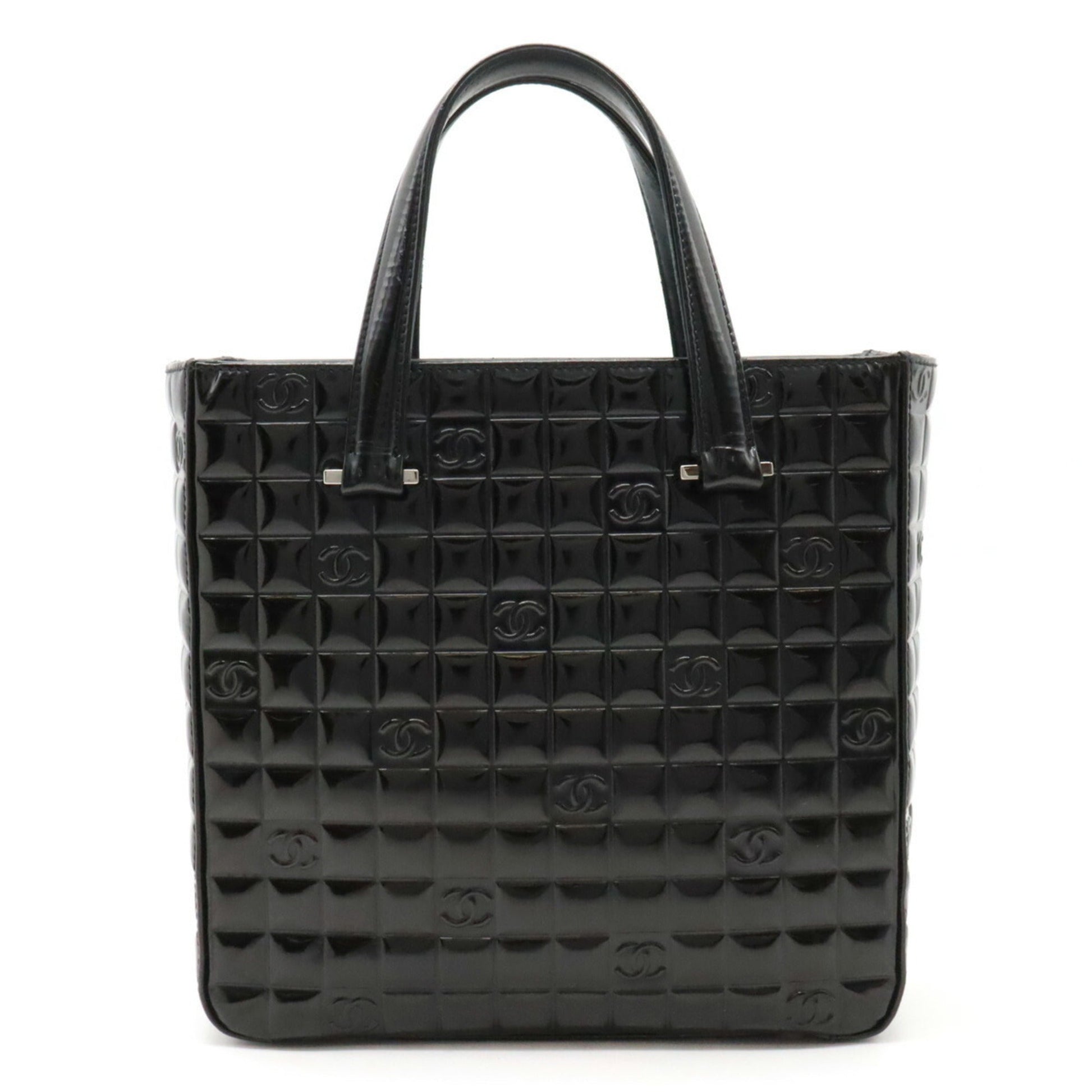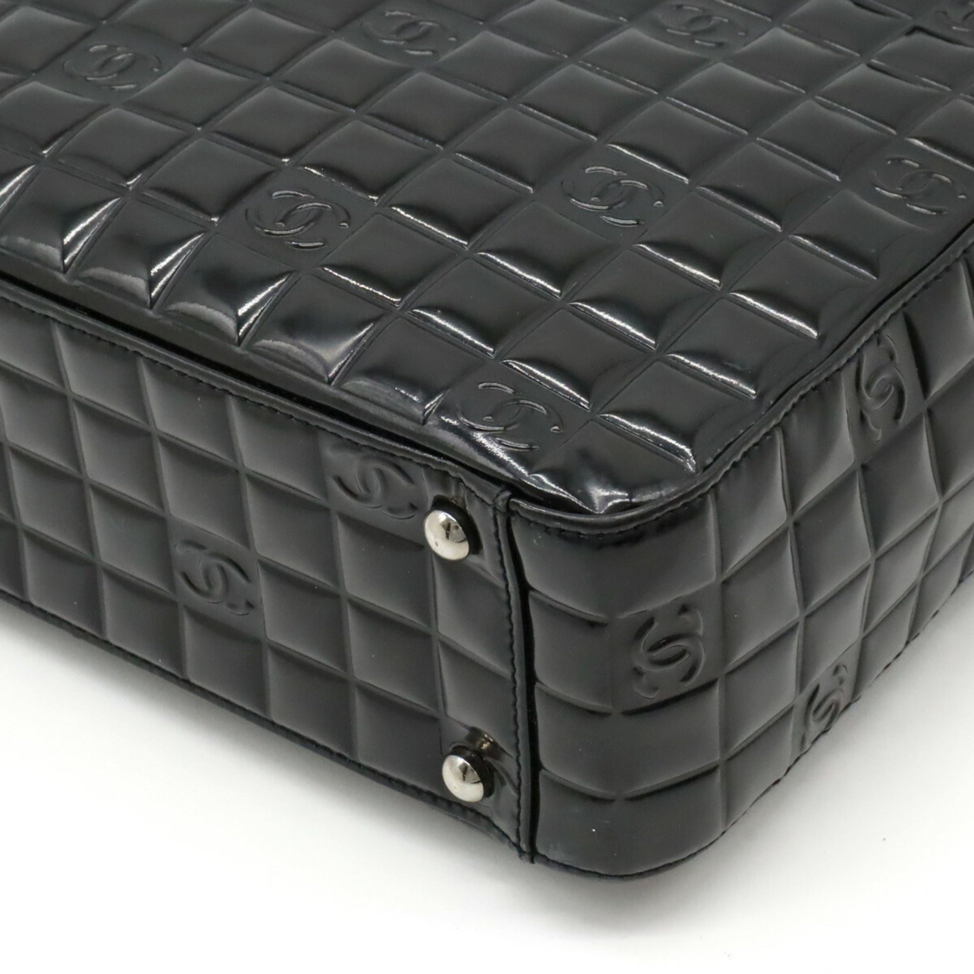 CHANEL Chocolate Bar Coco Mark Tote Bag Handbag Patent Leather Black A20131