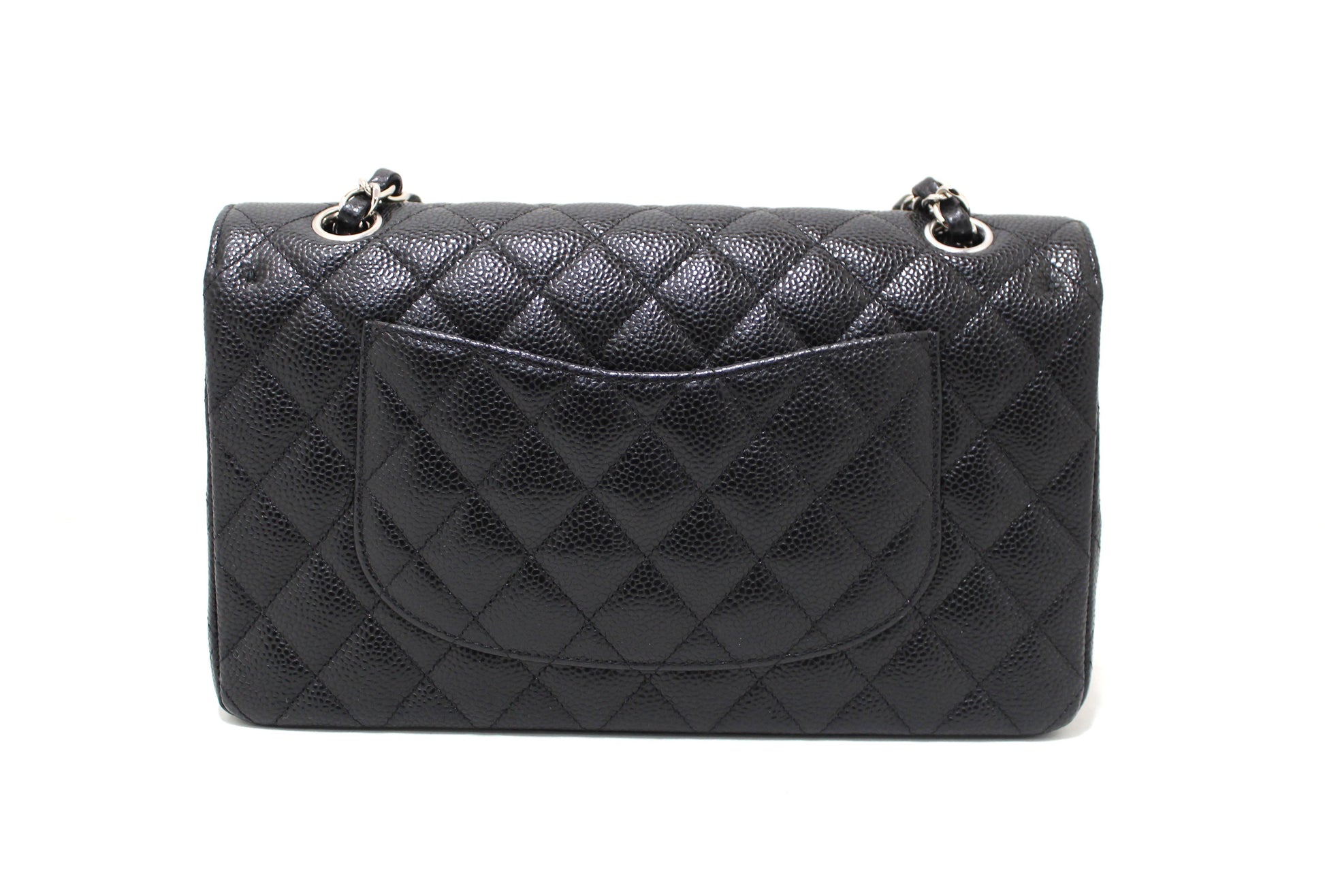 Chanel Classic Black Quilted Caviar Leather Classic Medium Double Flap Bag