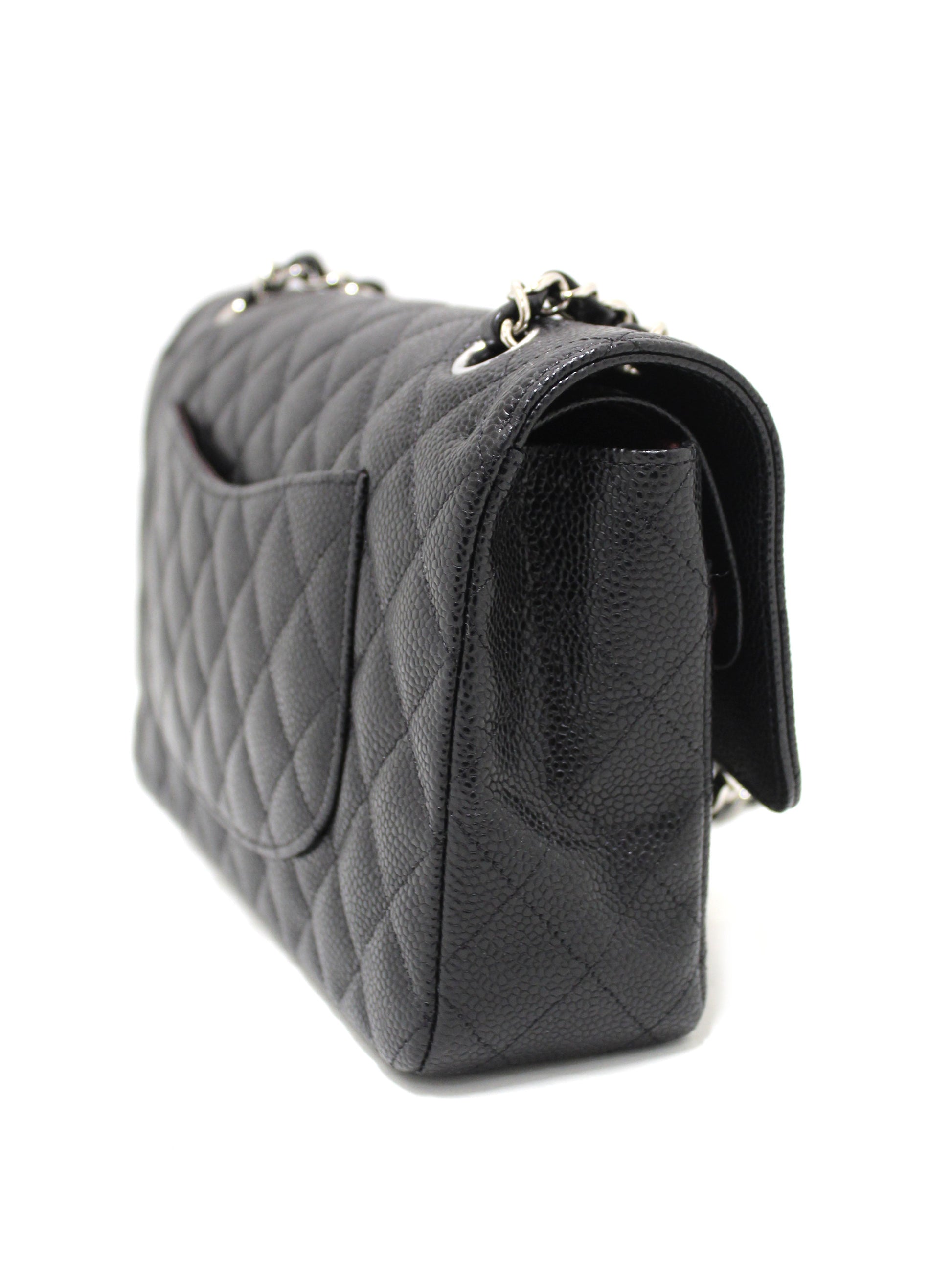 Chanel Black Quilted Caviar Leather Classic Medium Double Flap Bag