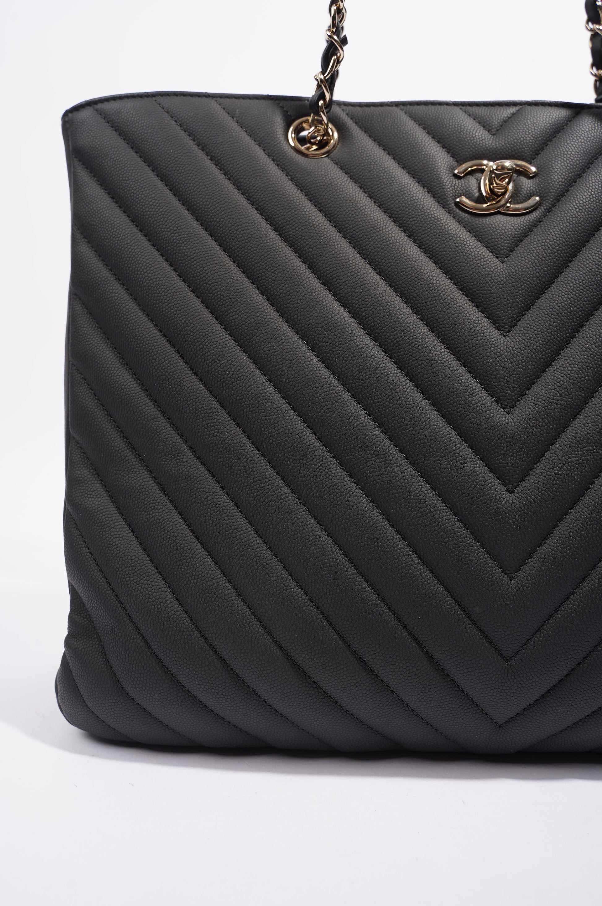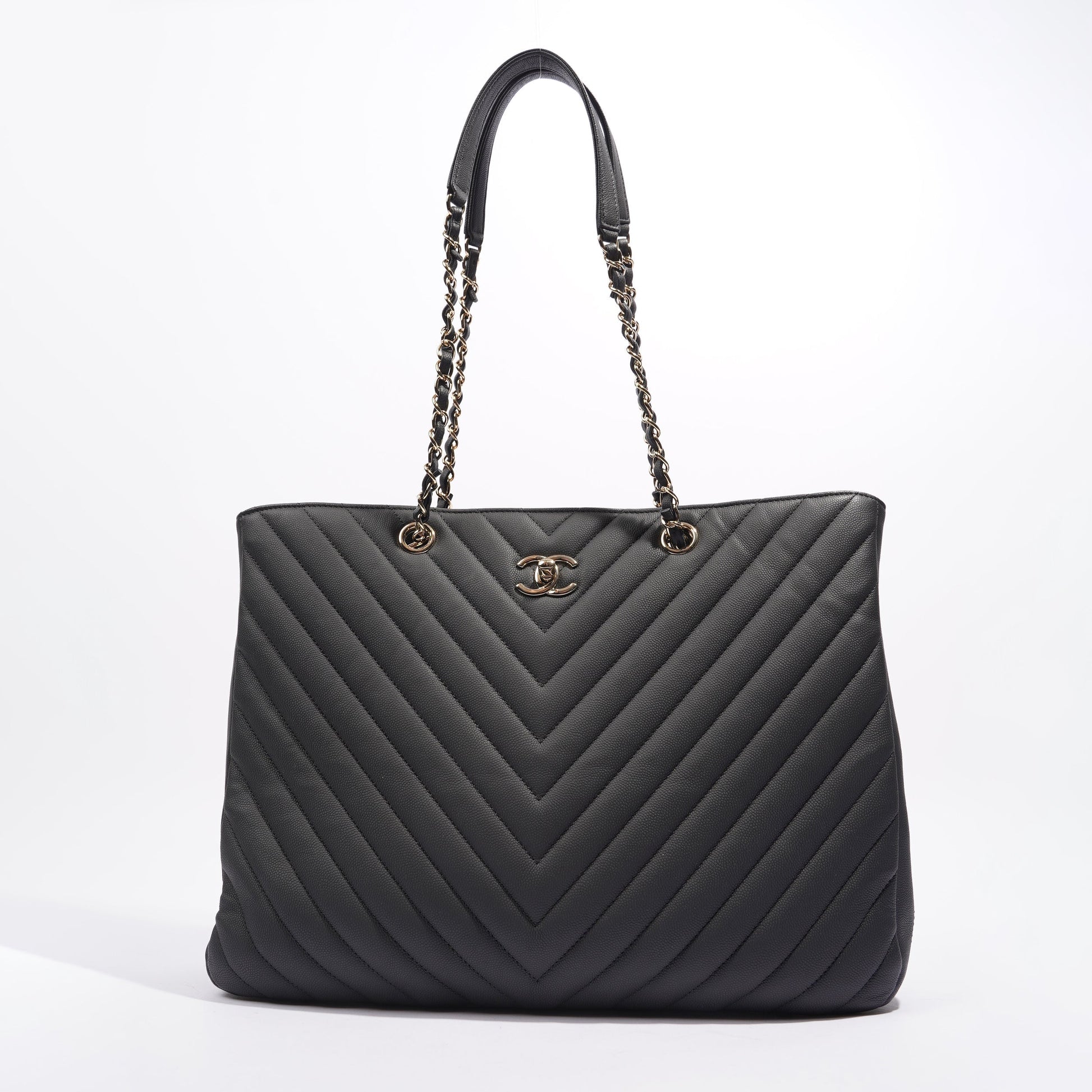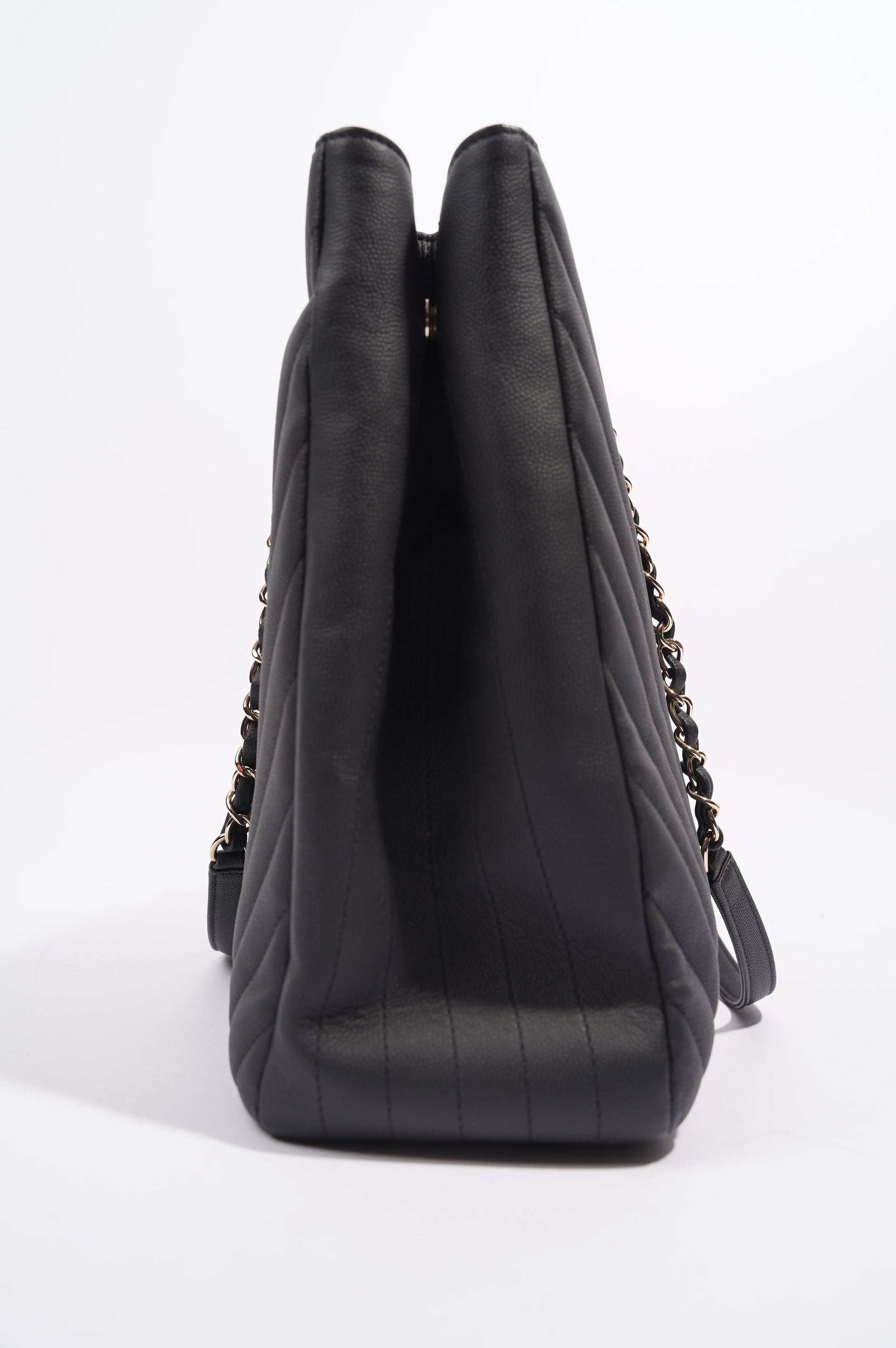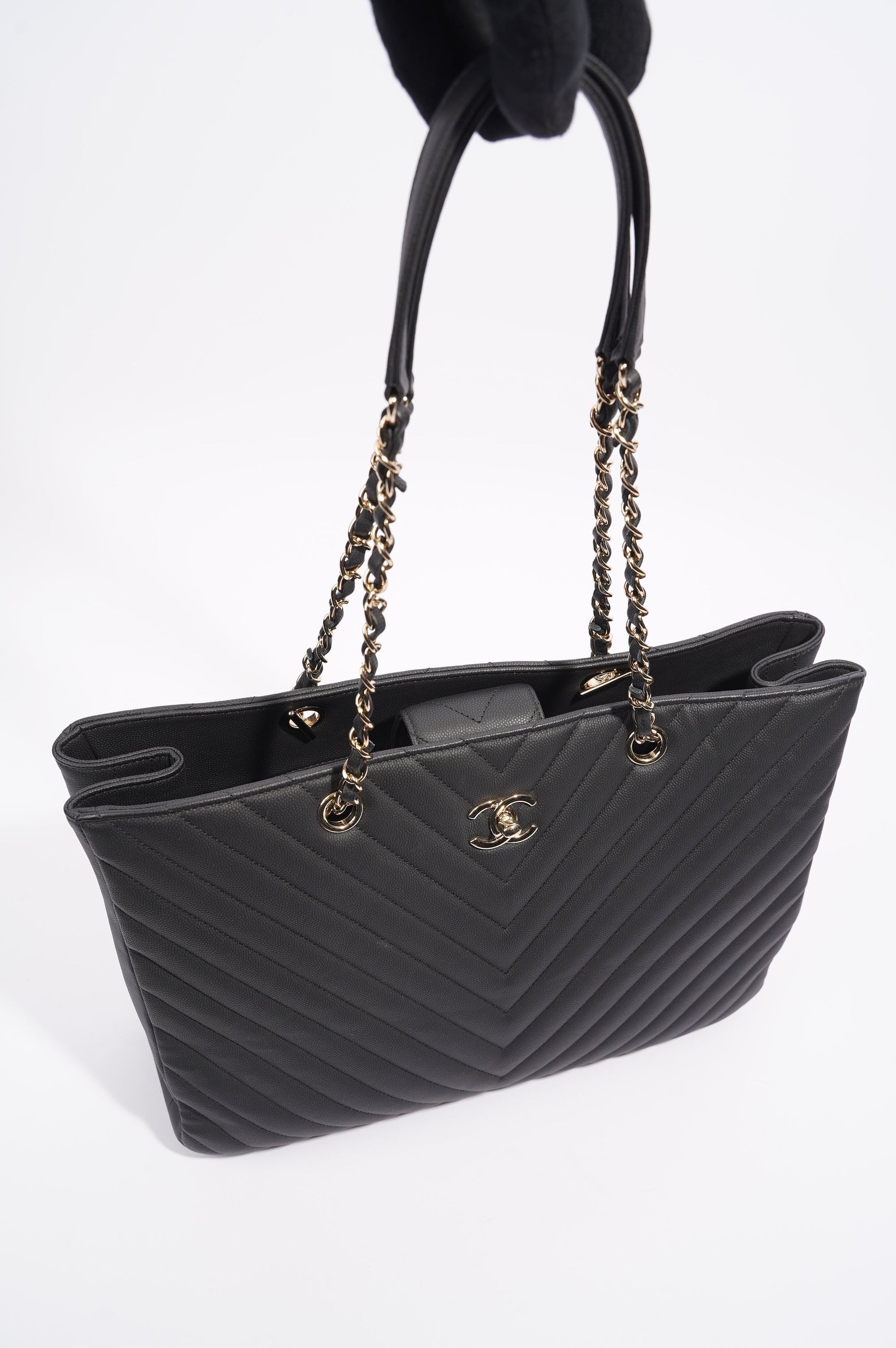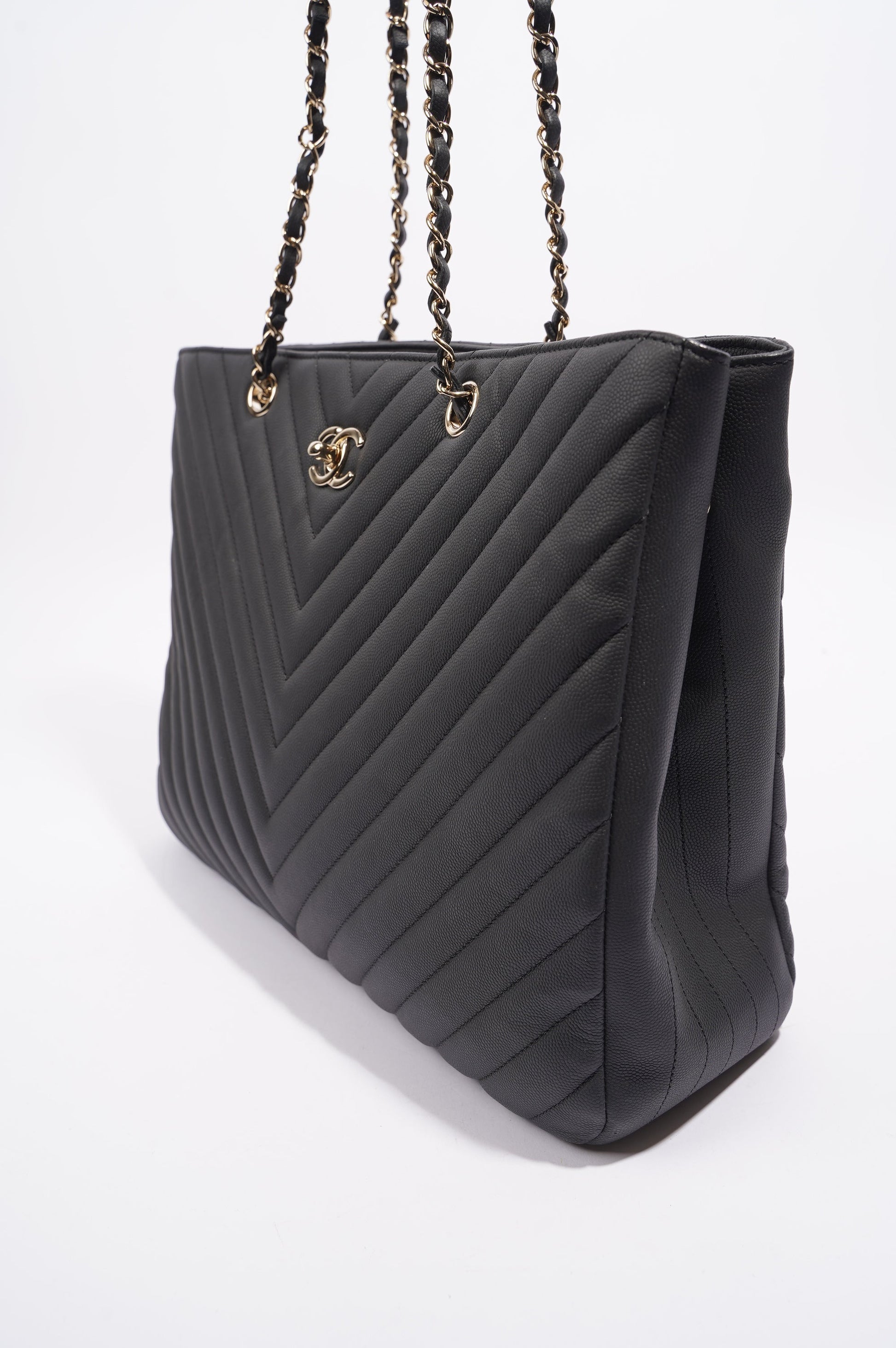 Chanel Womens Lambskin Classic Chevron Timeless Tote Black
