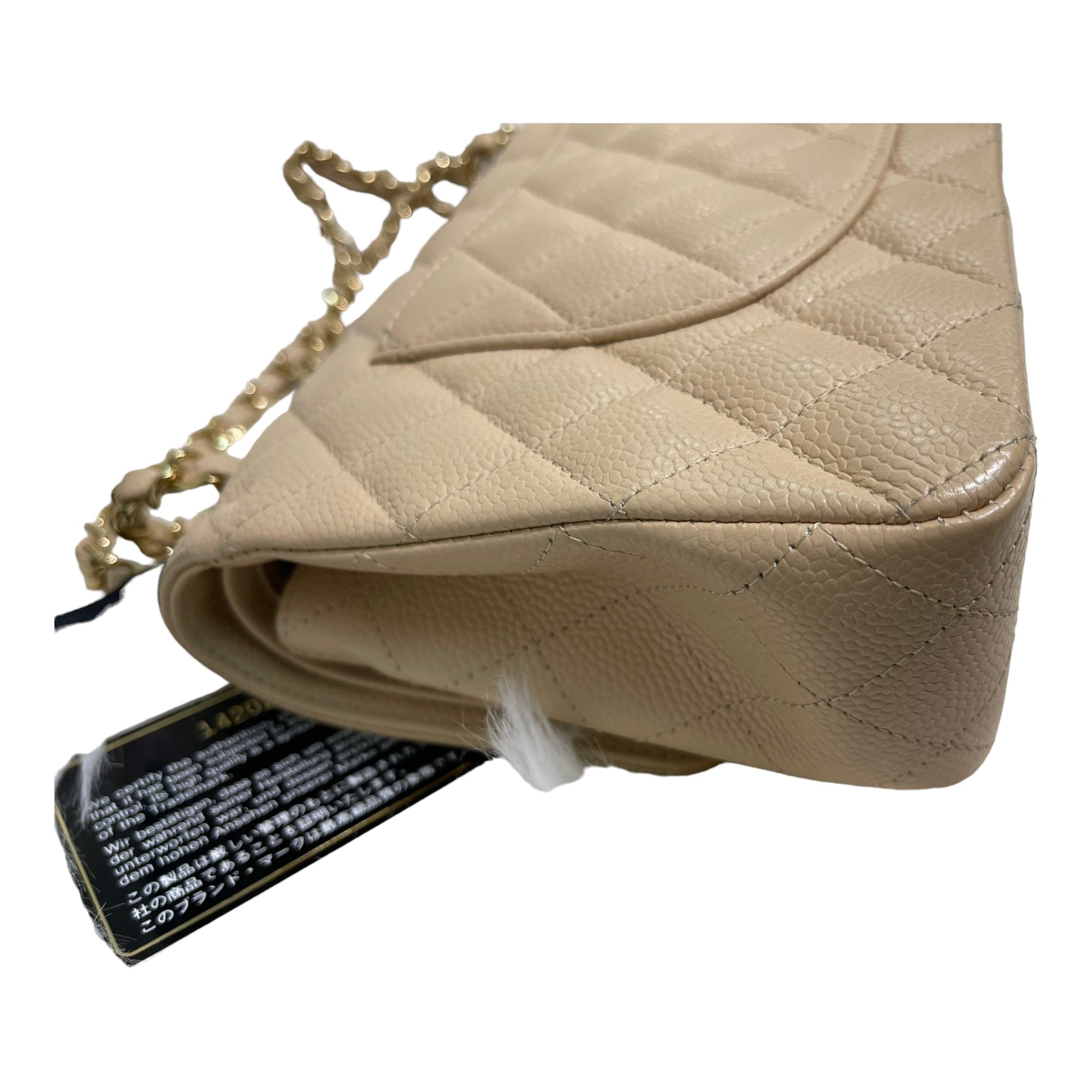Chanel Classic M/L Medium Flap Quilted Beige Caviar Gold Hardware
