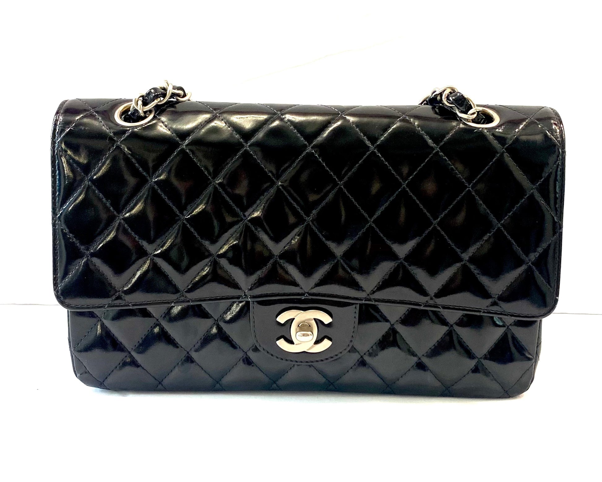 CHANEL CLASSIC QUILTED PATENT DOUBLE FLAP MEDIUM SHOULDER BAG