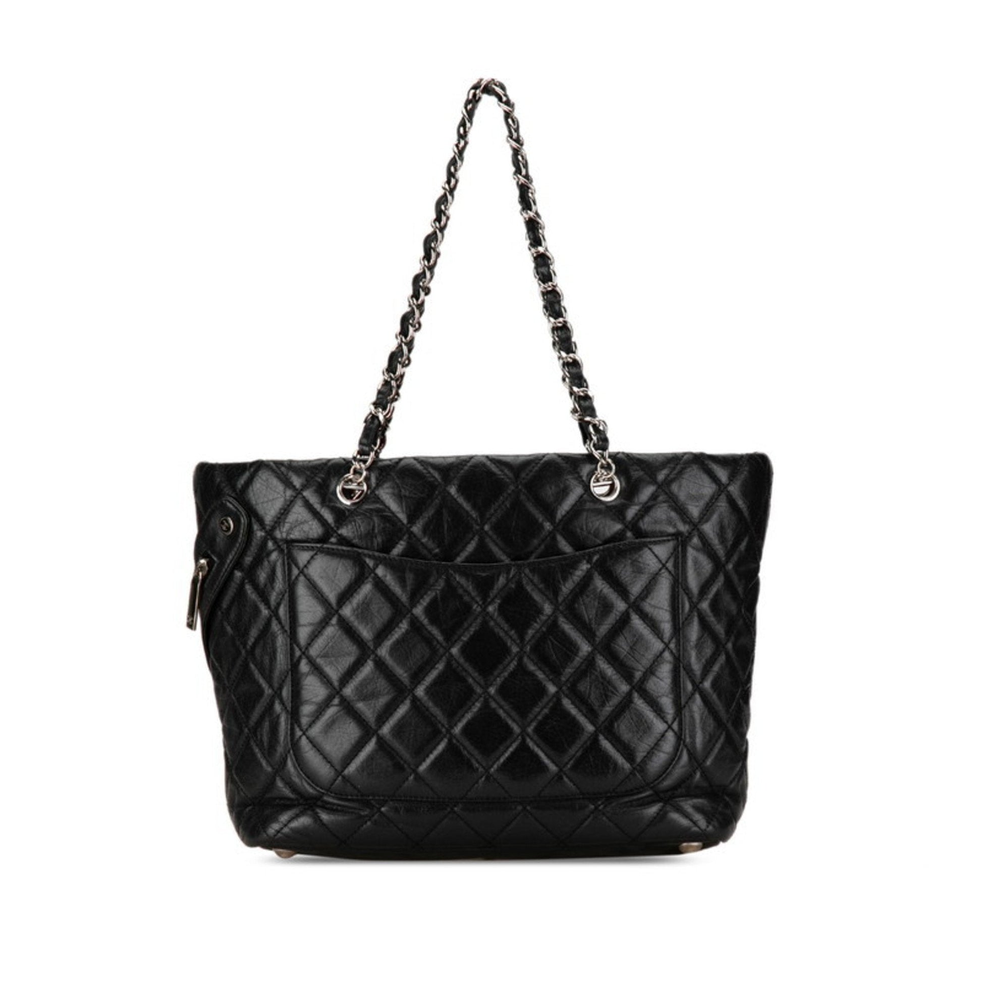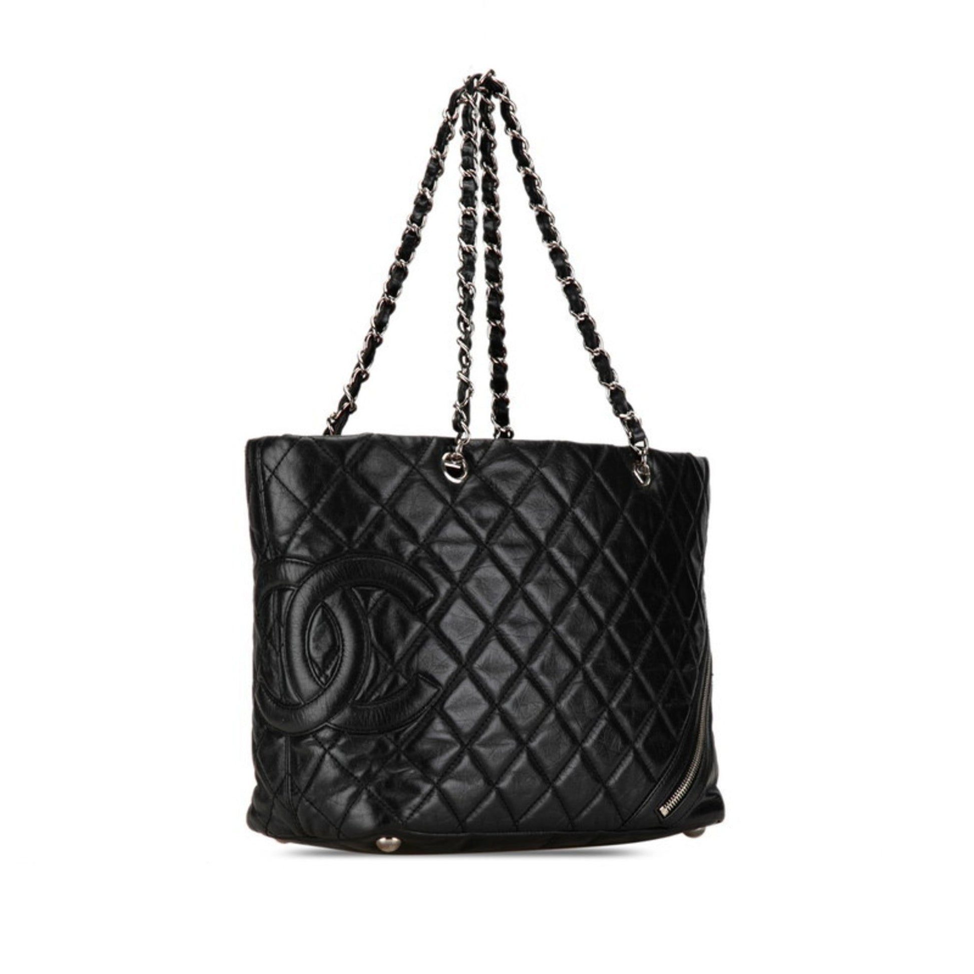 Chanel Coco Mark Cambon Chain Handbag Tote Bag Black Silver Leather Women's CHANEL