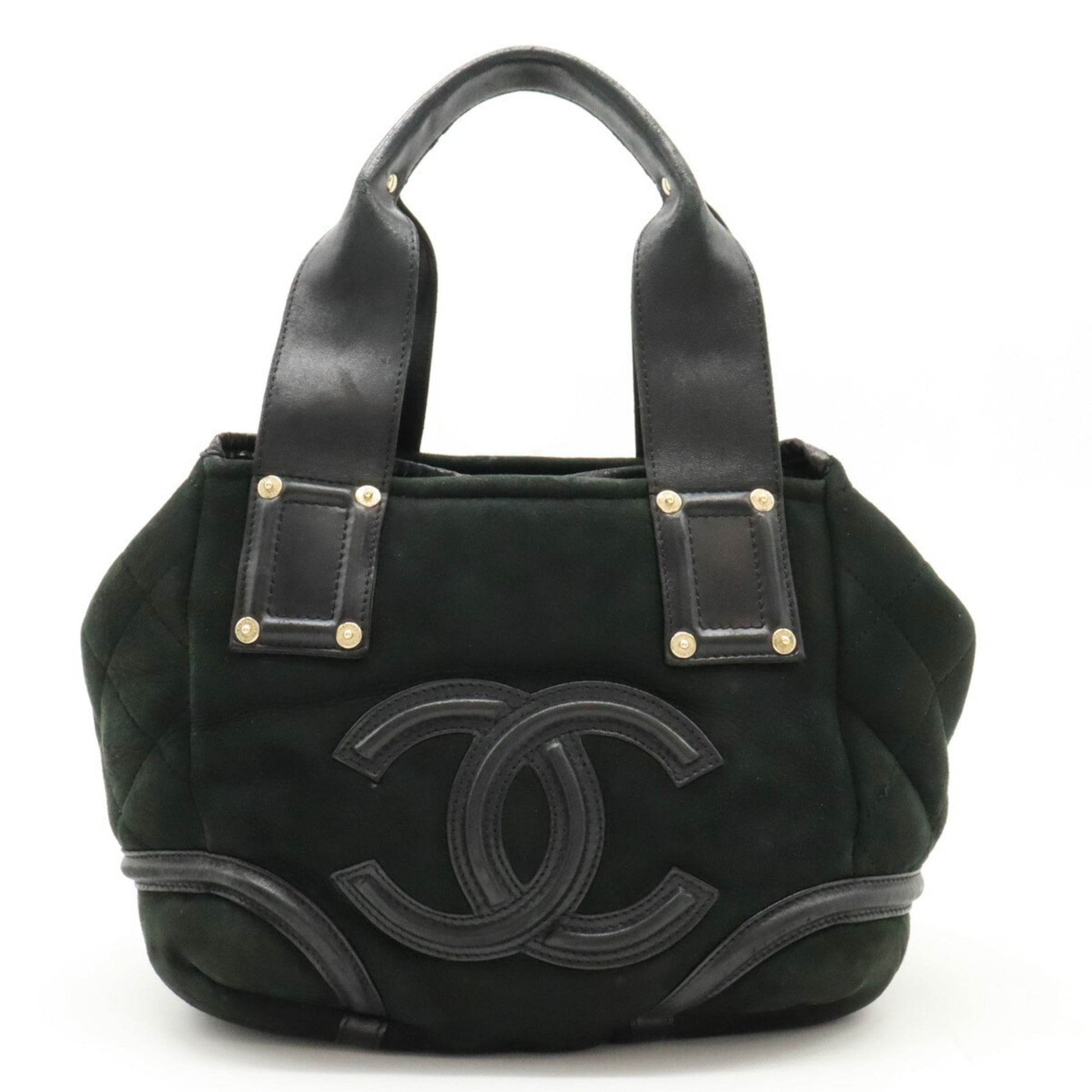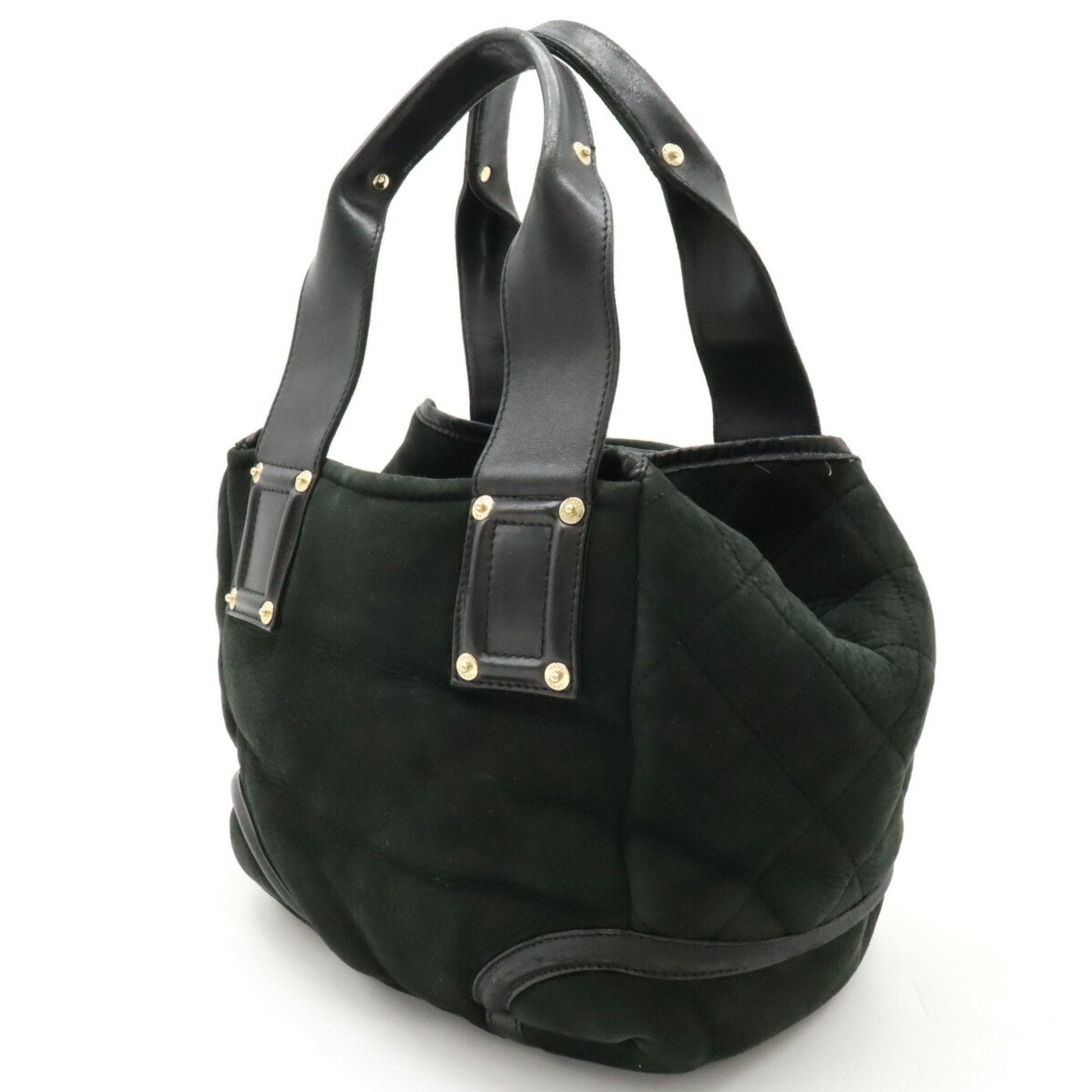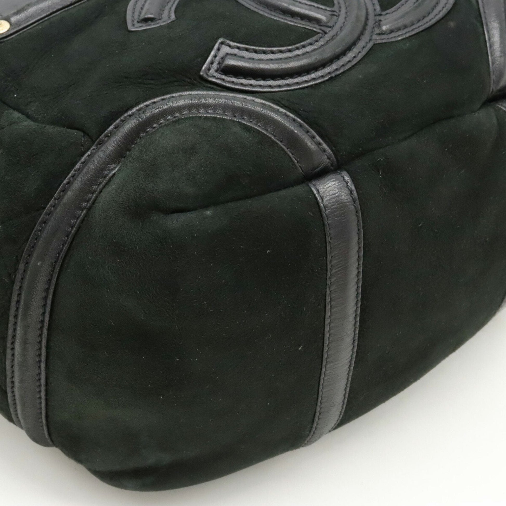 CHANEL Coco Mark Handbag Tote Bag Mouton Leather Boa Black