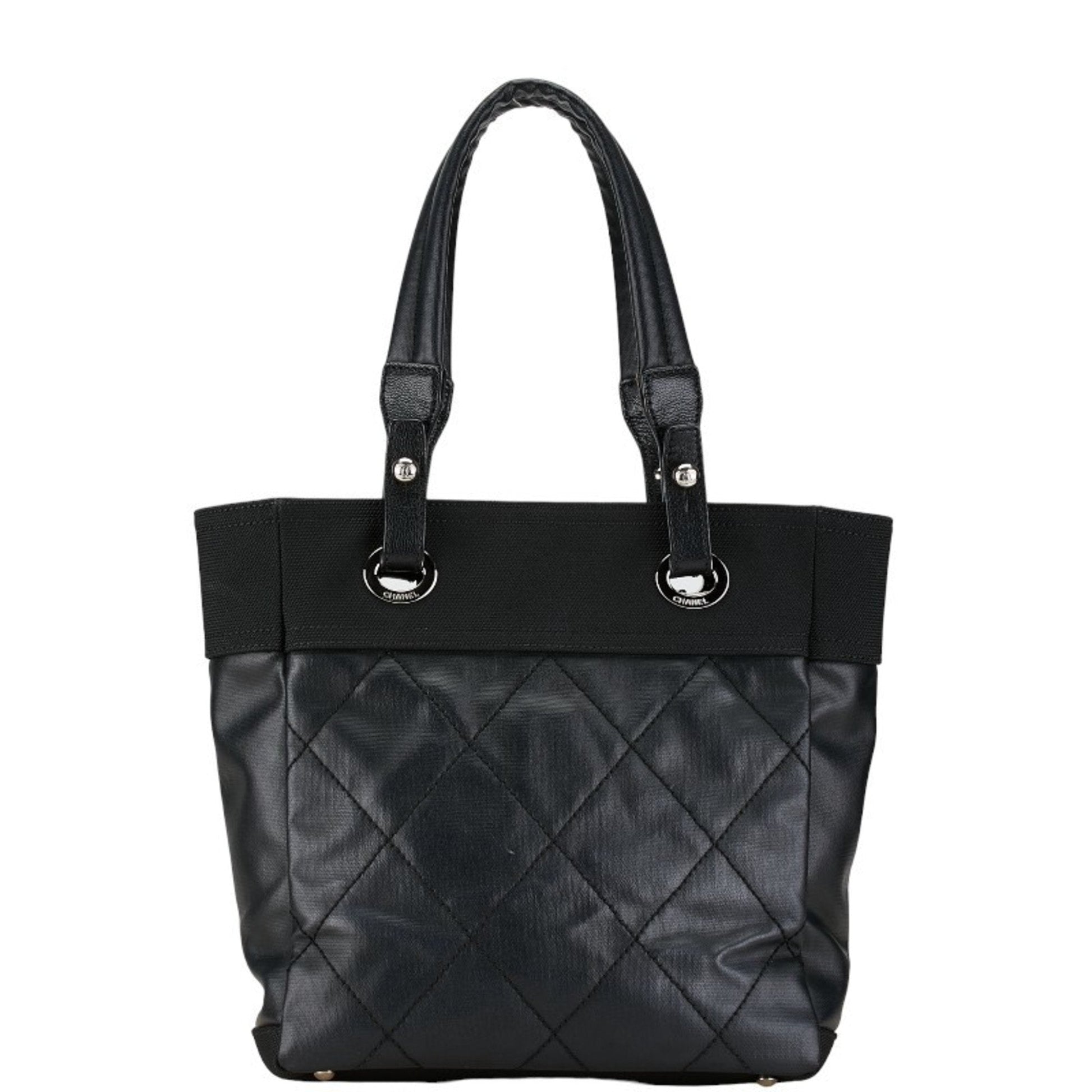 Chanel Coco Mark Paris Biarritz Tote PM Bag Handbag A34208 Black PVC Canvas Women's CHANEL