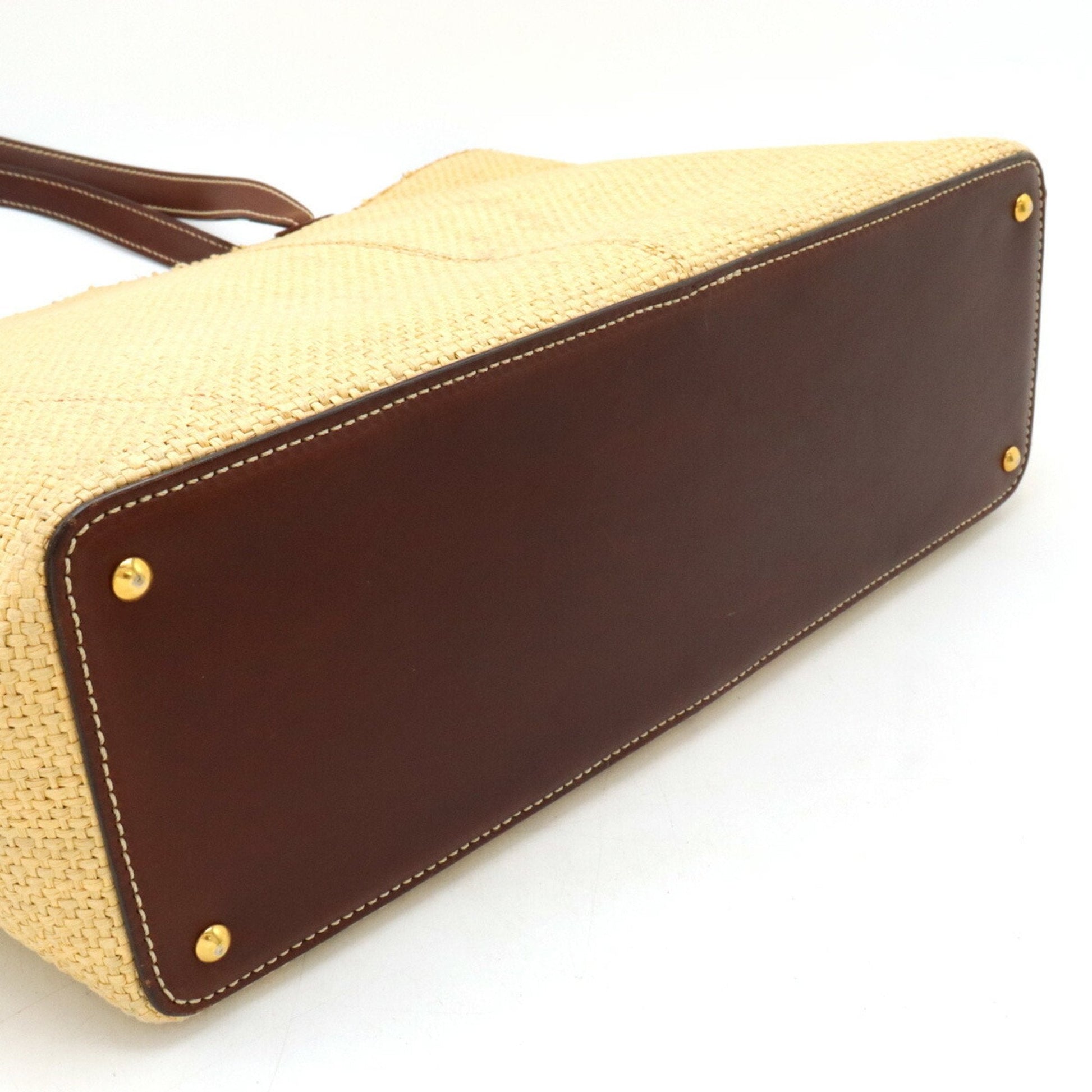 CHANEL Coco Mark Tote Bag Large Shoulder Straw Leather Natural Dark Brown