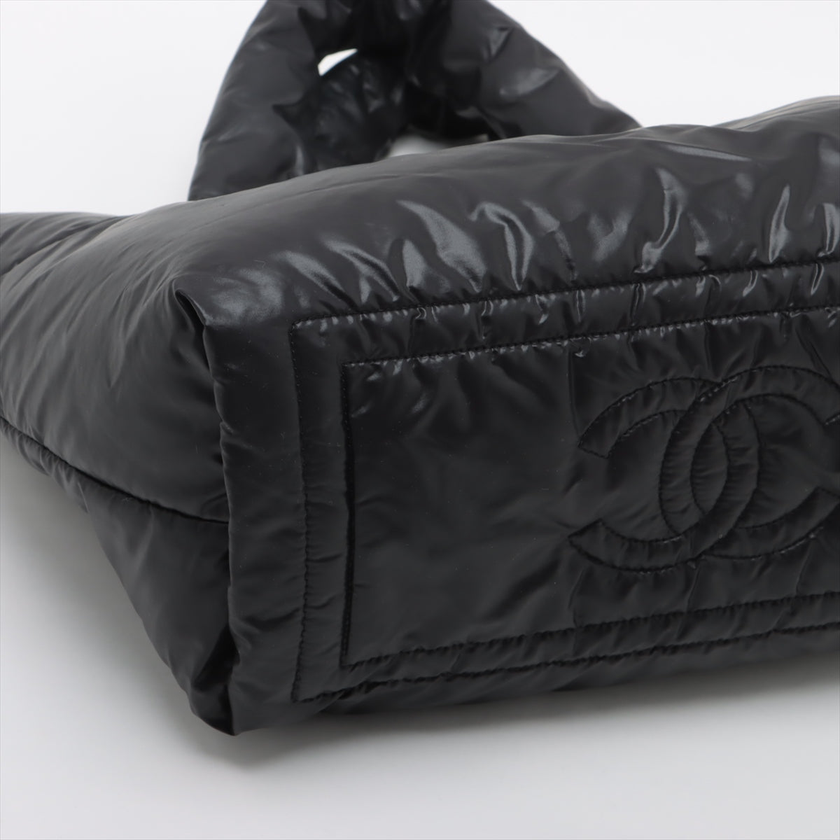 Chanel Coco Nylon Tote Bag Black Silver G 13th