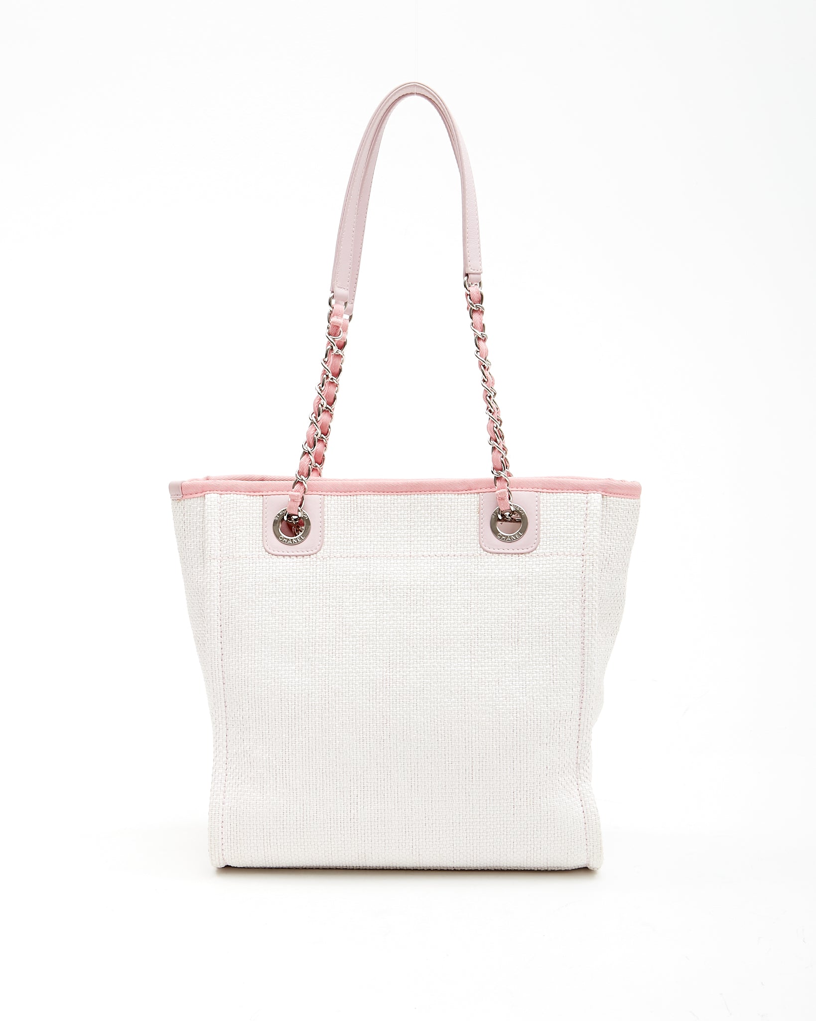 Chanel Cream & Pink Canvas Small Deauville Small Tote Bag