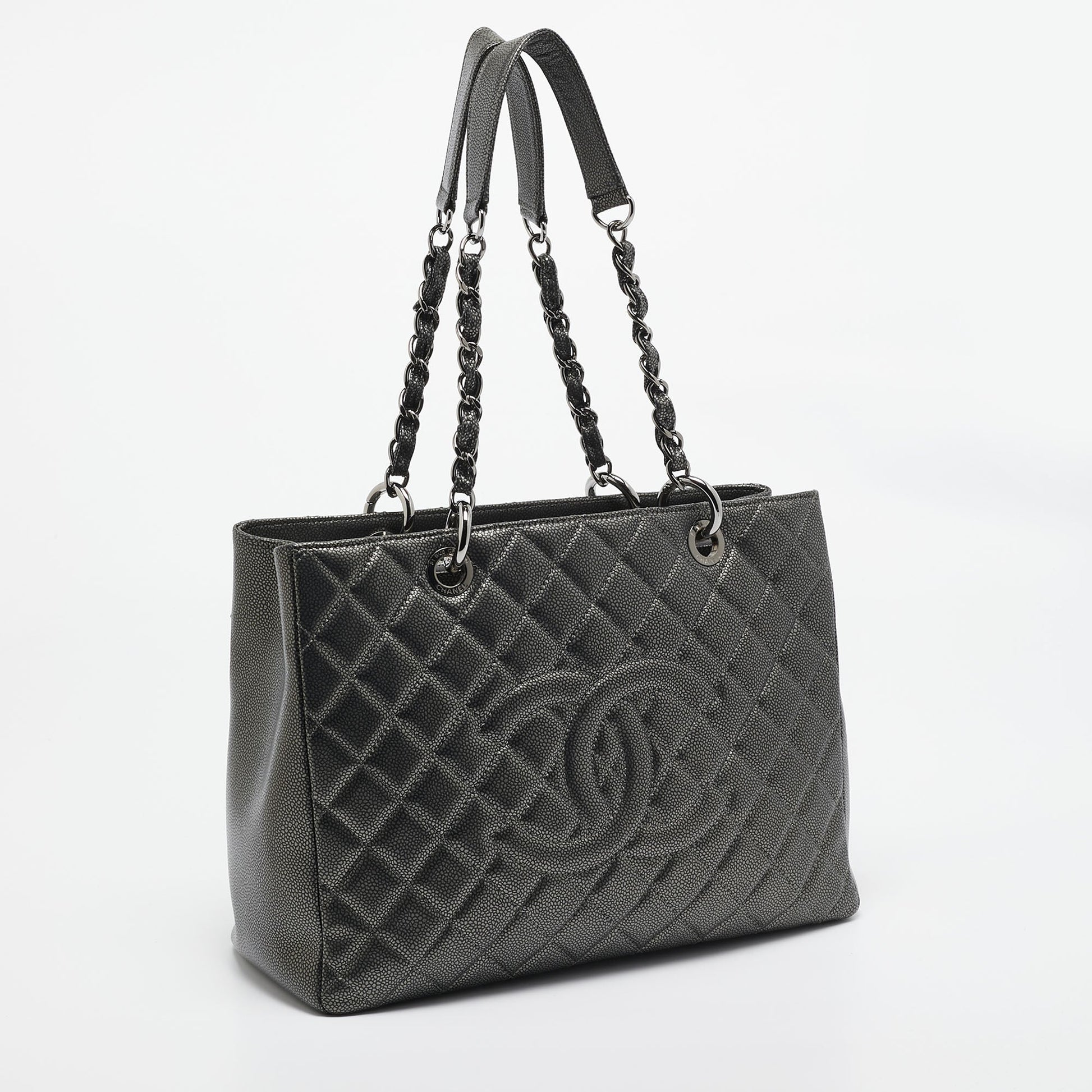 CHANEL Dark Grey Quilted Caviar Leather GST Tote