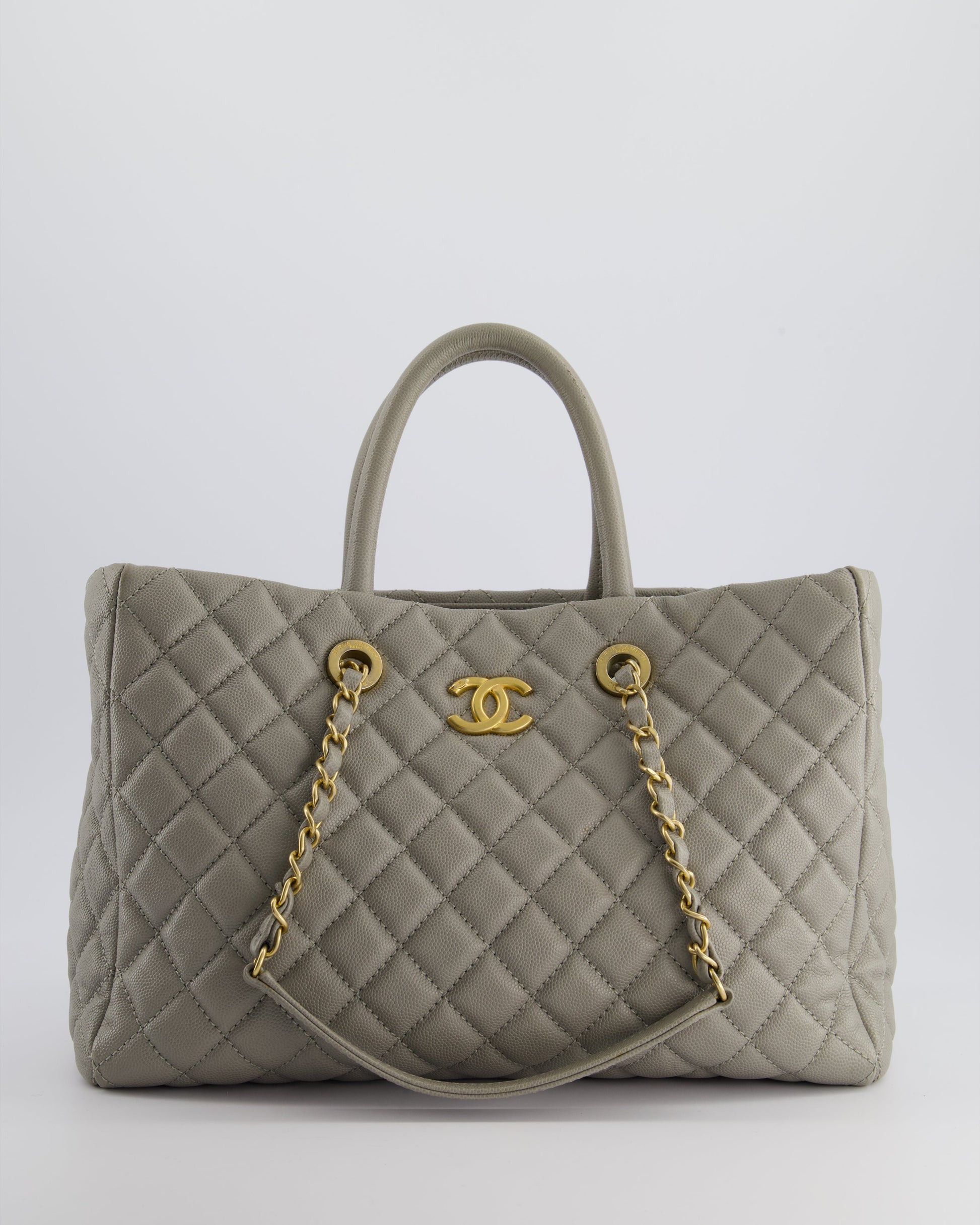 Chanel Dove Grey Tote Bag in Caviar Leather with Brushed Gold Hardware