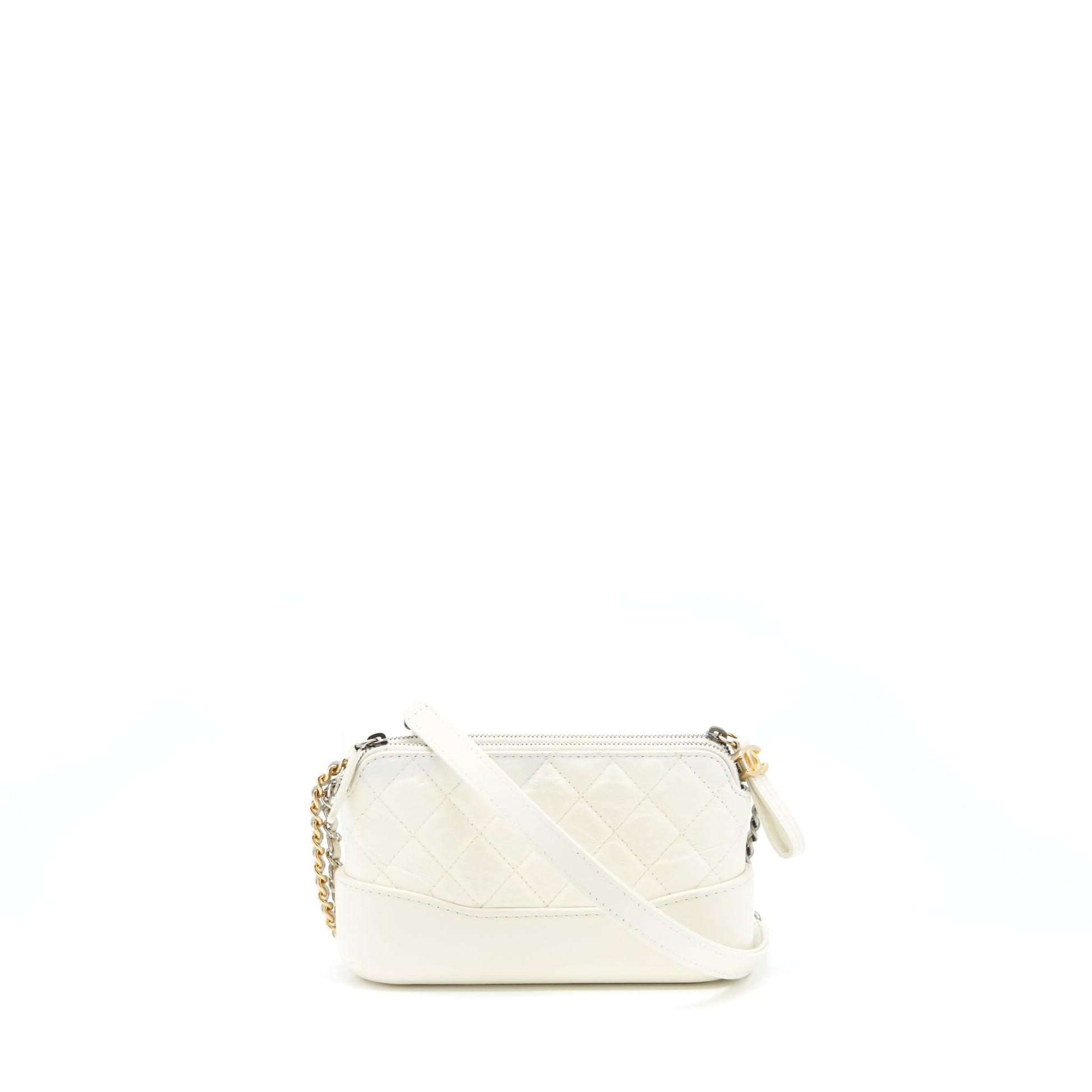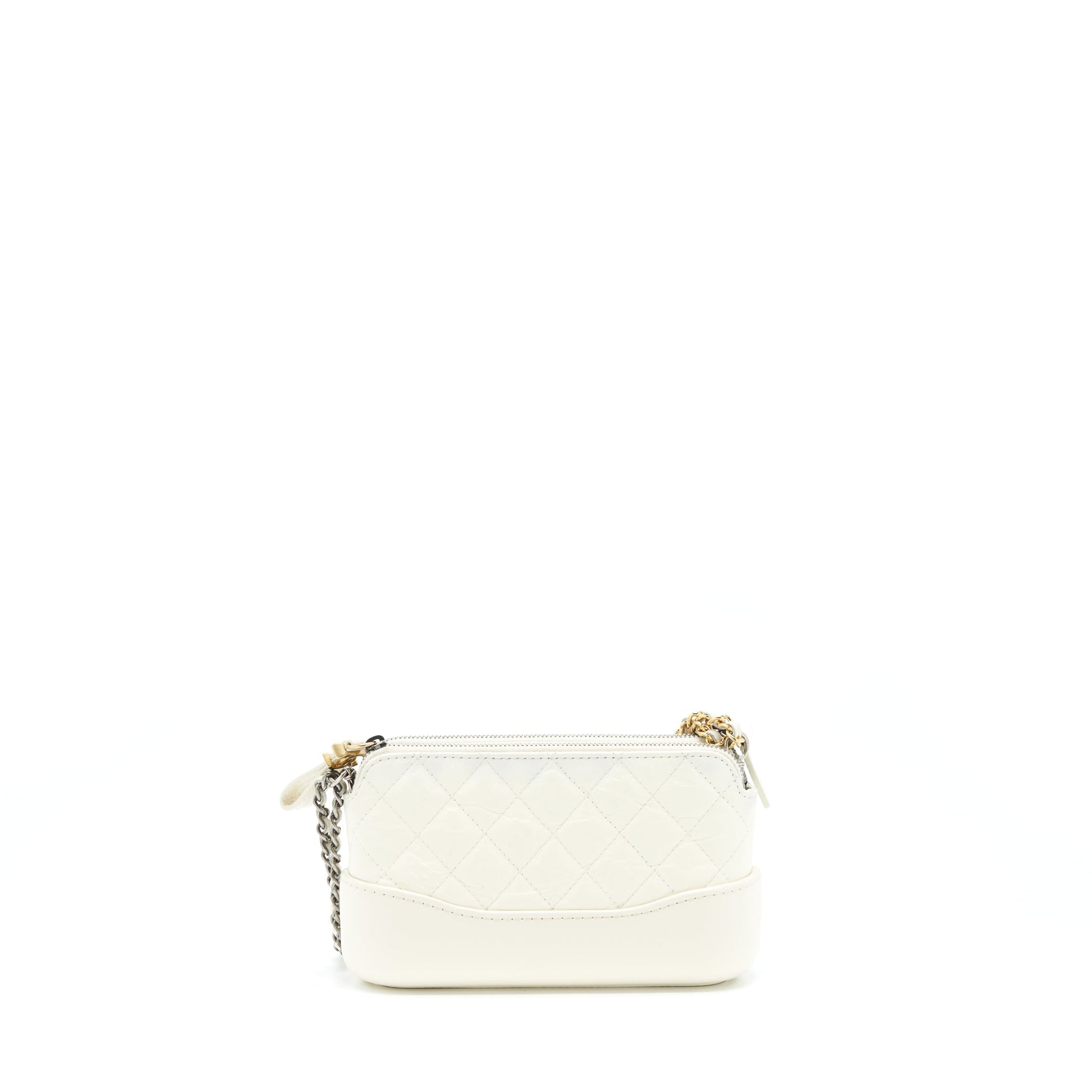 Chanel Gabrielle Clutch On Chain Aged Calfskin White With Silver And Gold Hardware