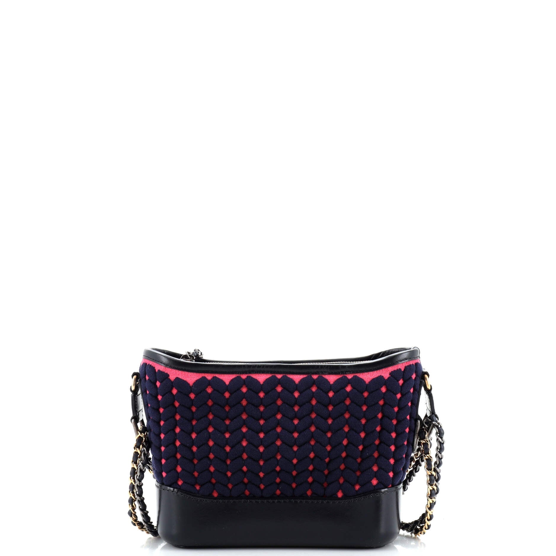 Introducing the Chanel Gabrielle Hobo Knit Fabric And Leather Small - a chic blend of sophistication and versatility. This exquisite handbag features a unique combination of knit fabric and luxurious leather, creating a modern yet timeless look. The small size makes it perfect for both day and evening wear, adding a touch of elegance to any outfit.