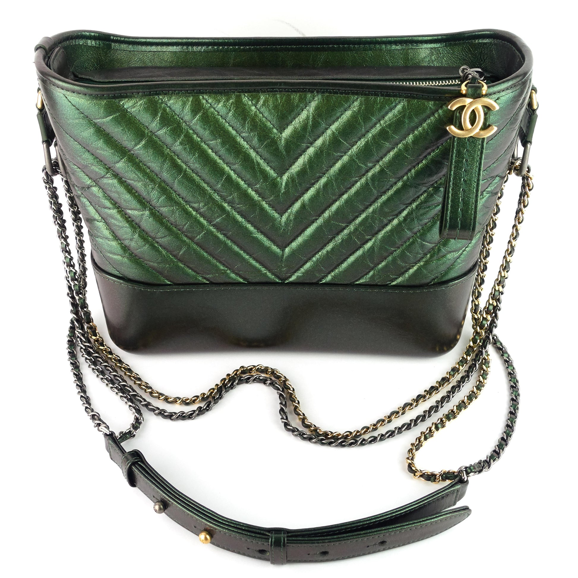 CHANEL Gabrielle Medium Chevron Metallic Leather Hobo Bag