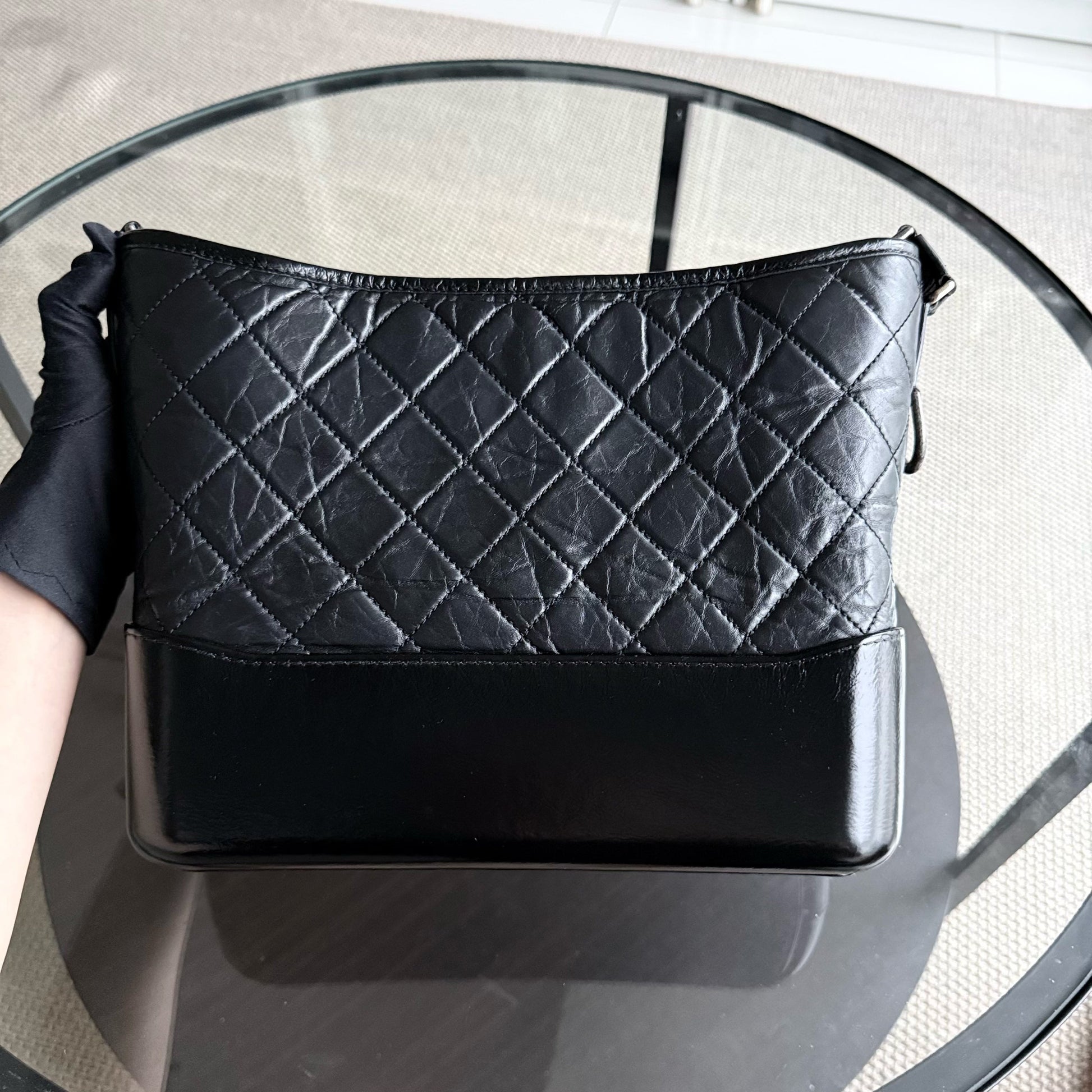 Chanel Gabrielle Medium - Quilted Aged Calfskin Black Two-tone Gold Hardware Series 25