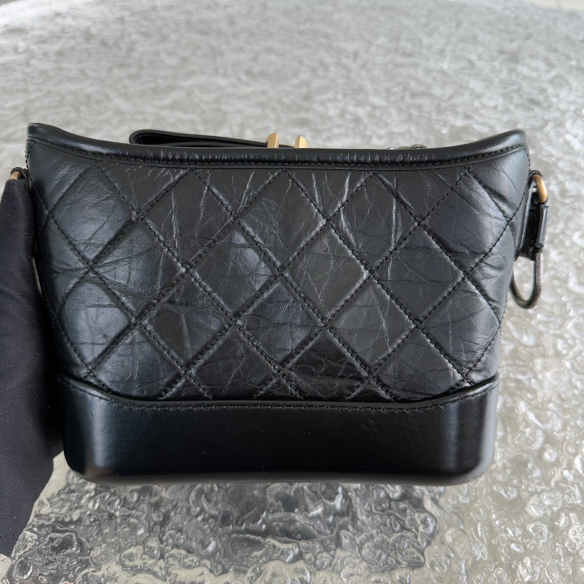 Chanel Gabrielle Small - Quilted Calfskin Hobo Black Gold Hardware
