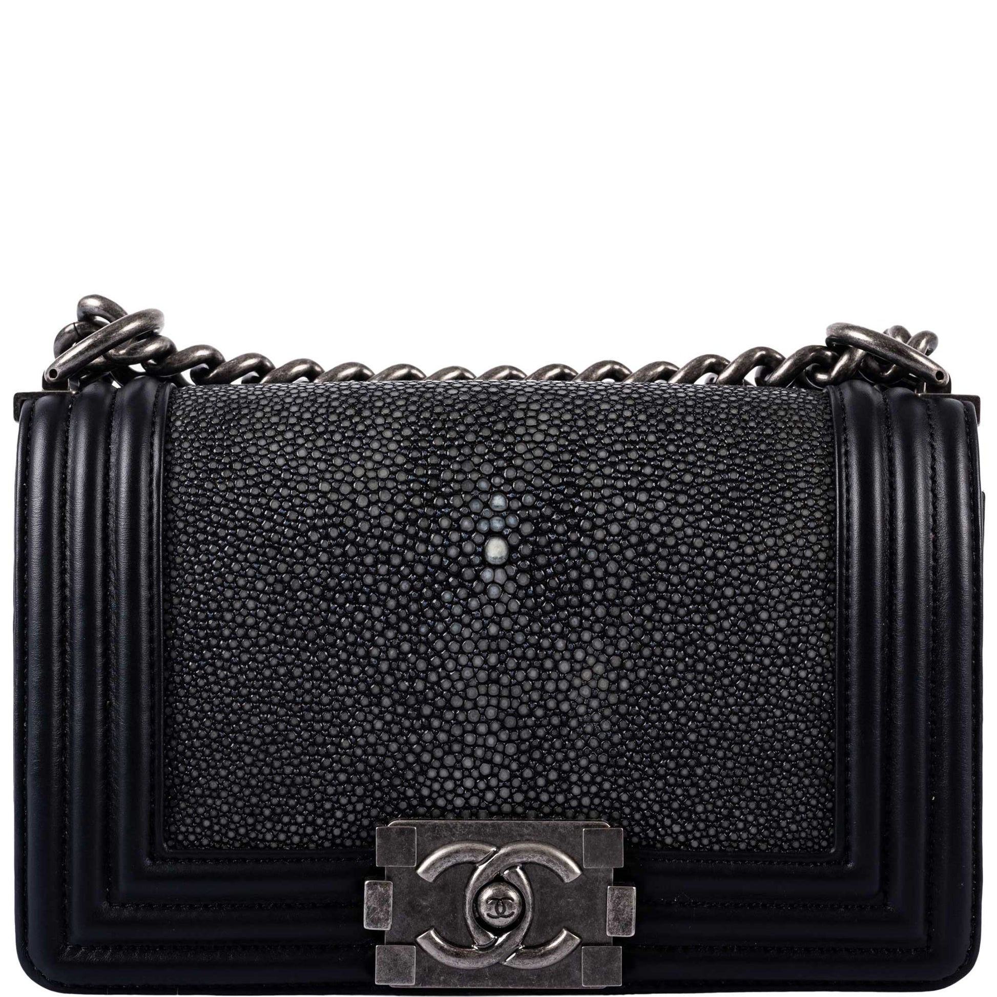 CHANEL Galuchat Stingray Small Boy Flap Black Bag