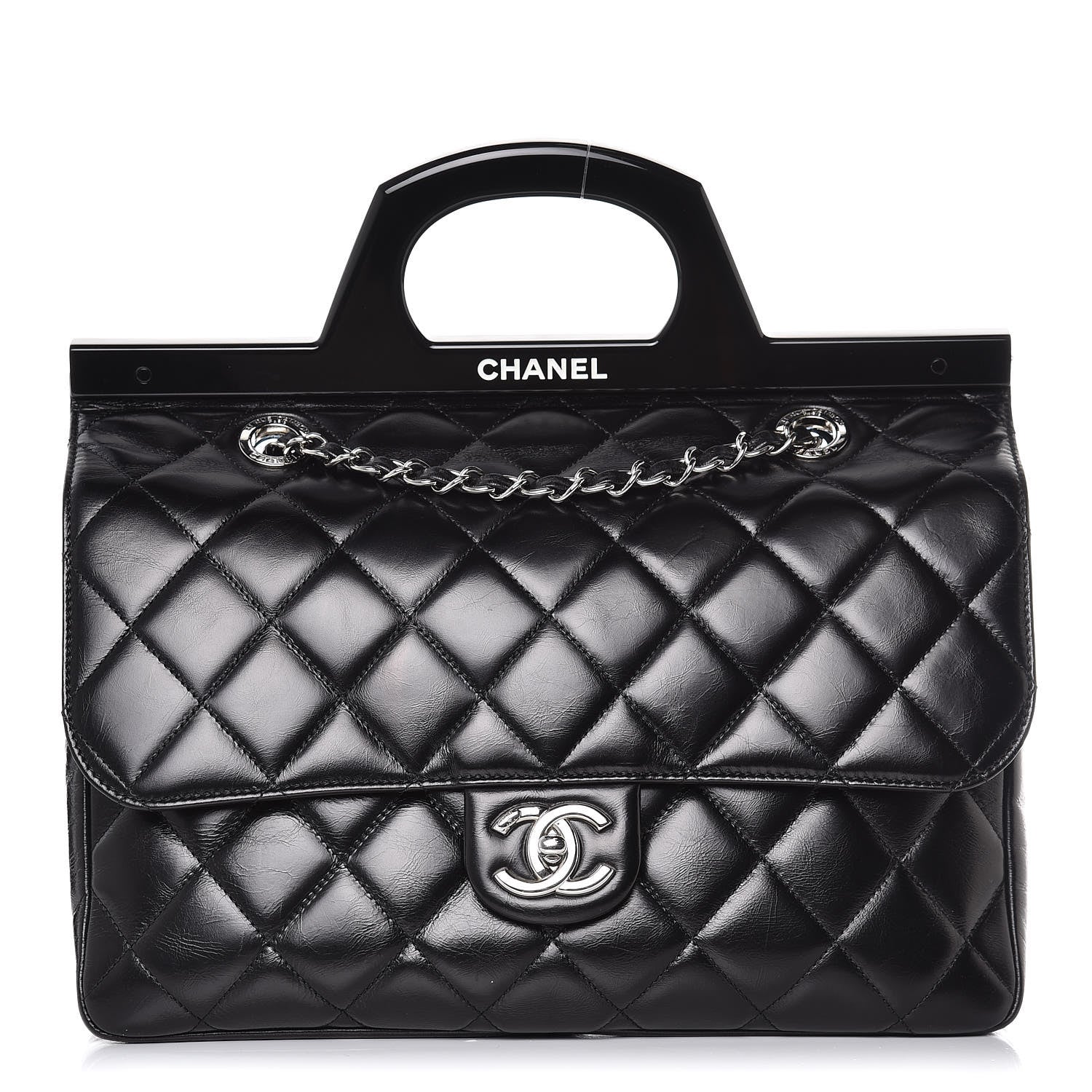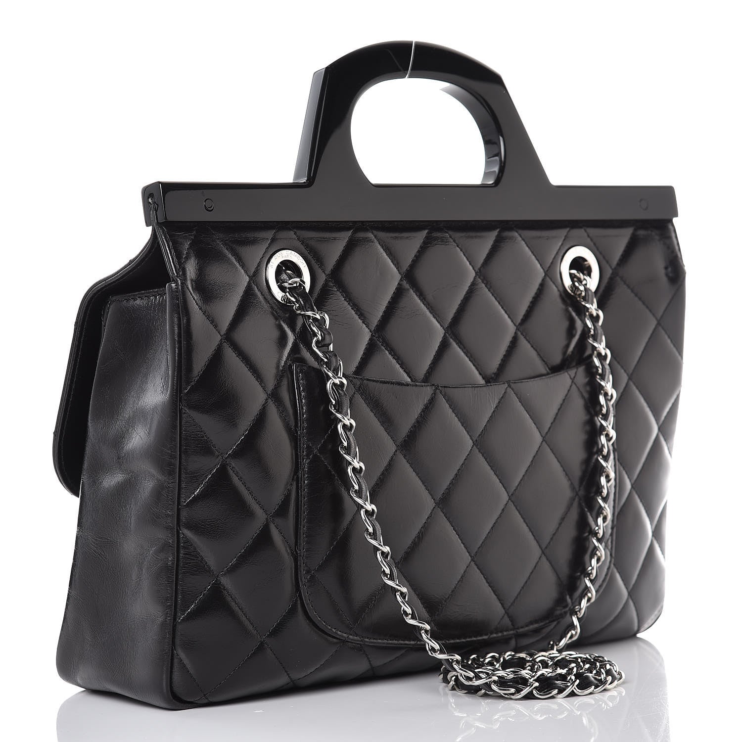 CHANEL Glazed Calfskin Quilted Small CC Delivery Tote