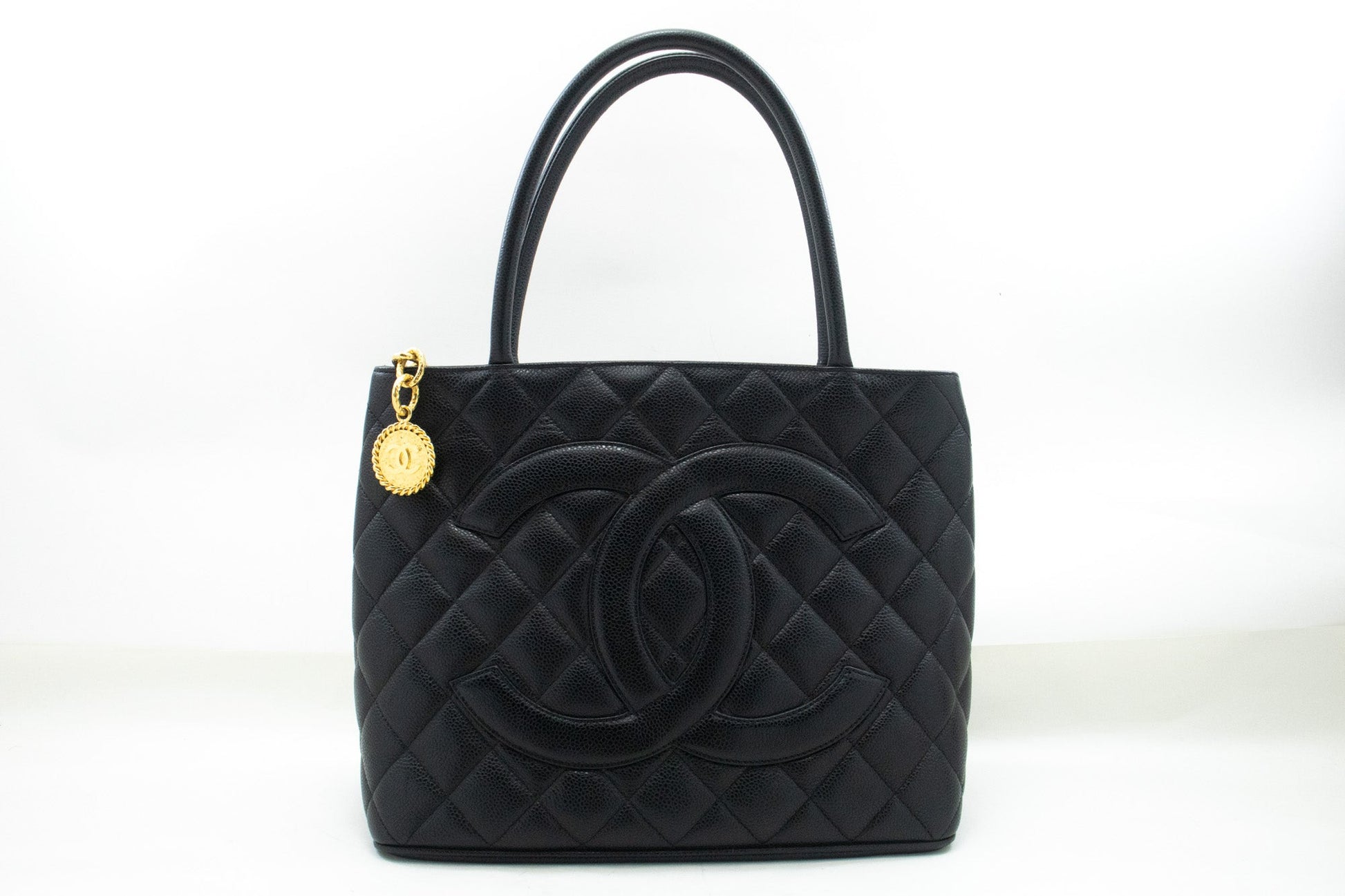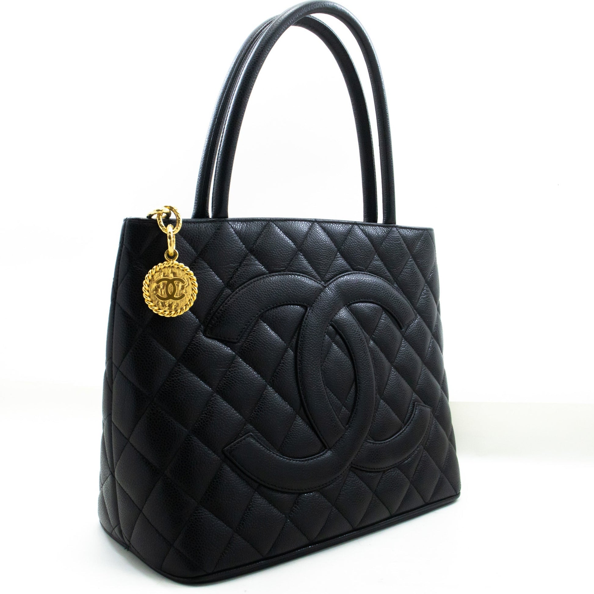 An CHANEL Gold Medallion Caviar Shoulder Bag Grand Shopping Tote.