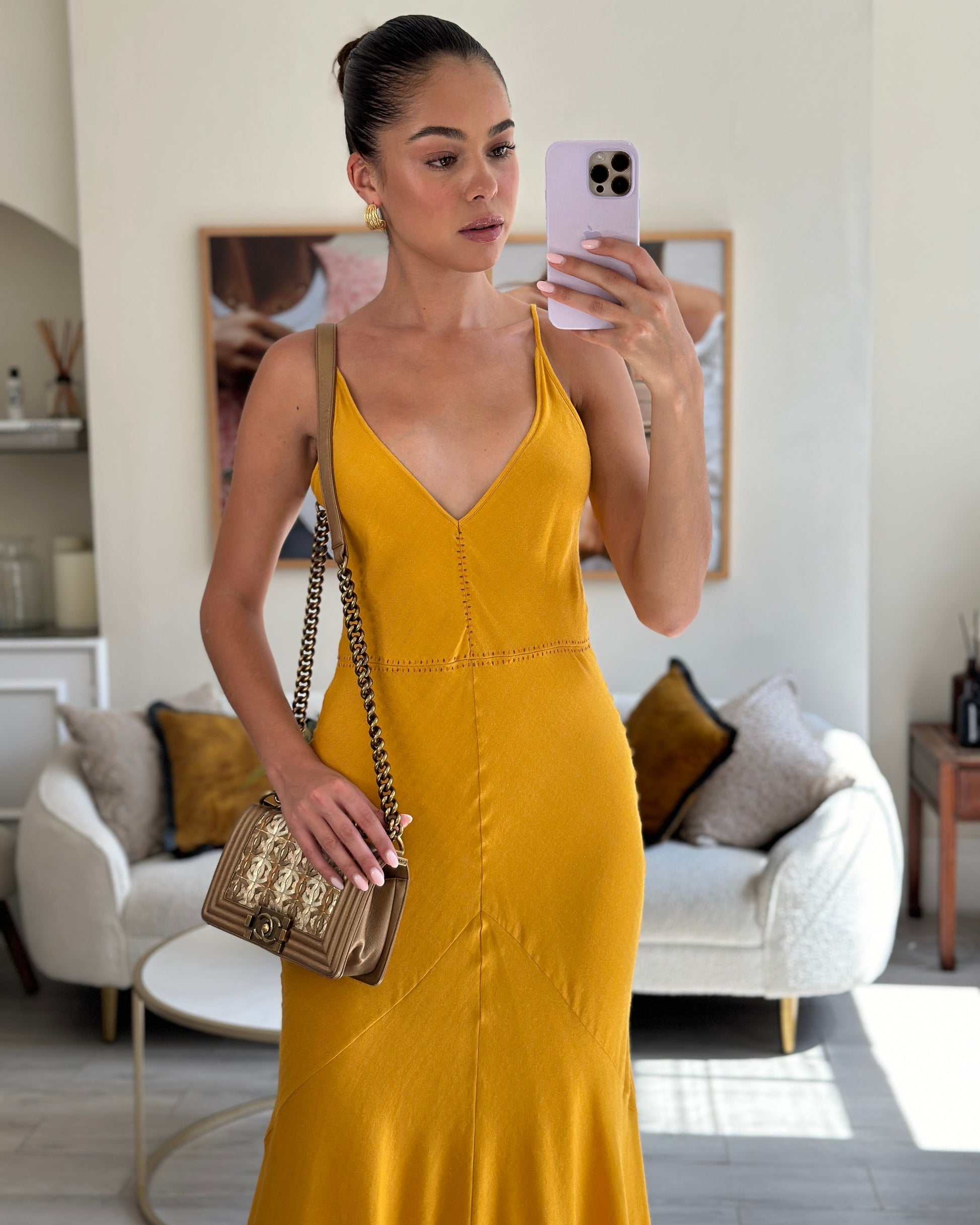 *LIMITED EDITION* Chanel Gold Metallic Small Boy Bag In Calfskin Leather with Antique Gold Hardware CC Details