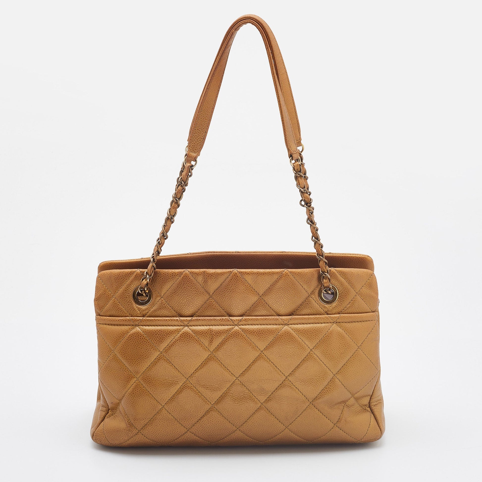 CHANEL Gold Quilted Caviar Leather CC Timeless Tote